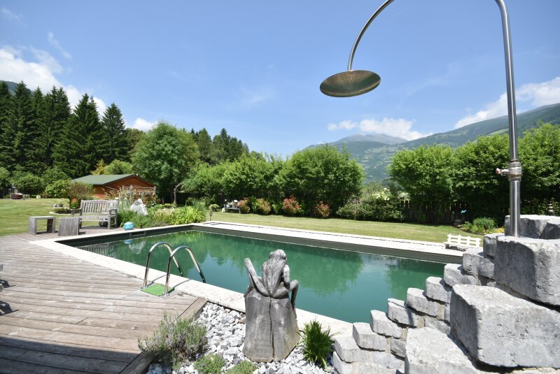 - Poolanlage / Naturpool (4,5 x 11,5m) mit Liegebereich (Holzterrasse aus Themokiefer)