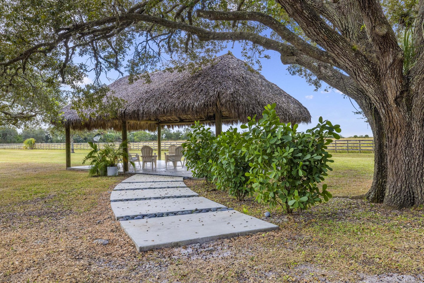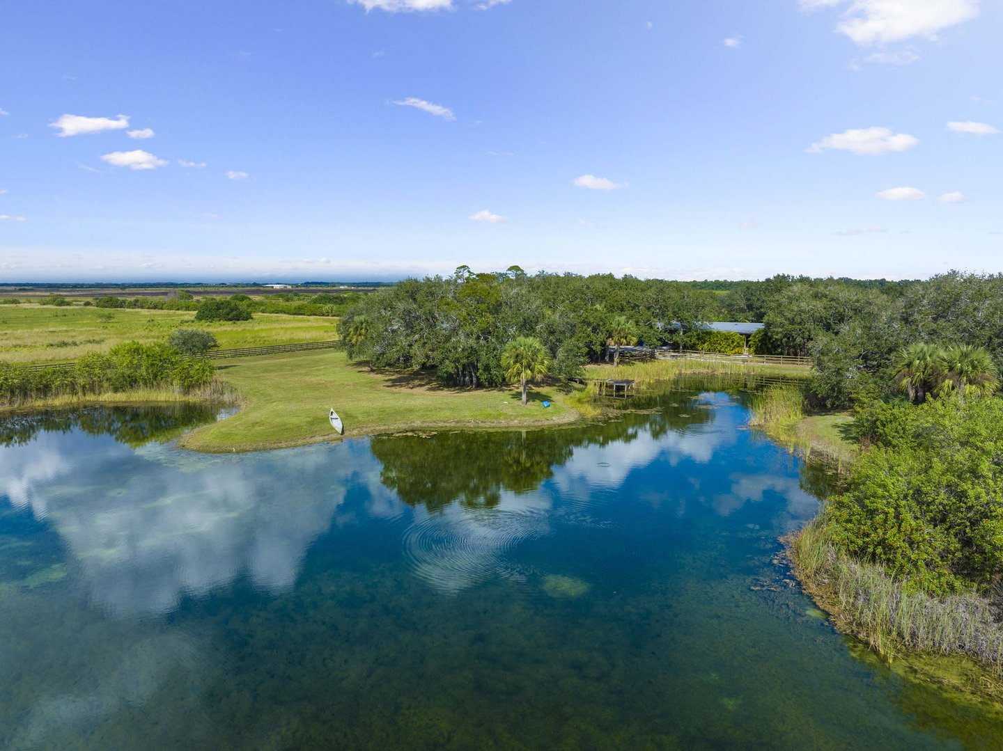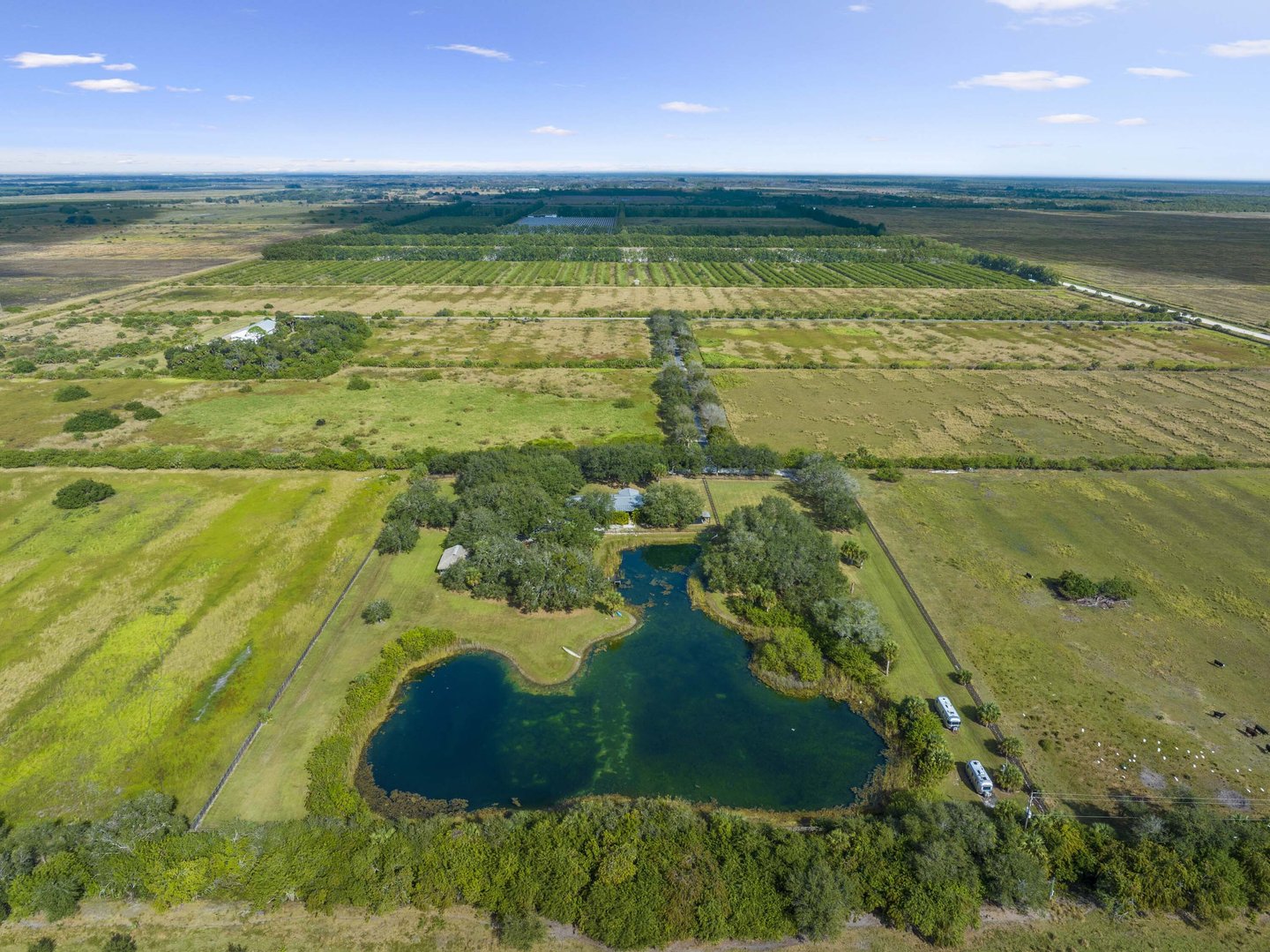 Ein Zufluchtsort unvergleichlicher Ruhe erwartet diese bemerkenswerte 133 Hektar große Ranch und stellt ein seltenes Angebot in der angesehenen Landschaft von Vero Beach dar. Dieses malerische landwirtschaftliche Anwesen bietet den ultimativen Rückzugsort für Viehzüchter, Reiter und anspruchsvolle Outdoor-Enthusiasten, die Privatsphäre und Vielseitigkeit suchen. Das sorgfältig gepflegte Wohnhaus mit 1.842 Quadratfuß verfügt über drei Schlafzimmer, zwei Badezimmer und durchdachte Modernisierungen, ergänzt durch ein privates Gästestudio. Weitläufige überdachte Veranden rahmen einen ruhigen Seeblick über den zwei Hektar großen privaten See mit Steg ein. Das Grundstück präsentiert eine außergewöhnliche Infrastruktur, darunter ein stattliches 7.000 Quadratfuß großes Metallgebäude mit separatem Eingang, umfangreichen Zäunen und Querzäunen, Kuhställe und mehrere Brunnen. Eine etablierte, von Eichen verkleidete gepflasterte Einfahrt und eine authentische 32x22 Fuß große Chickee-Hütte vervollständigen dieses außergewöhnliche Gebäude. Nur wenige Minuten von erstklassigen Reitanlagen und Poloplätzen entfernt, bieten dennoch absolute Abgeschiedenheit und ein friedliches Leben auf dem Land. Details zur Immobilie und von Gelegenheiten bereitgestellt vom Verkäufer oder anderen; Käufer muss überprüfen.
