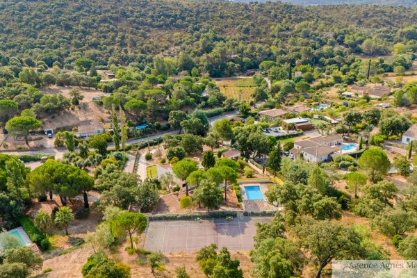 Die Landschaft von Bormes nicht weit von Bormes und seinem berühmten Dorf sowie den Stränden ? Das Anwesen umfasst eine eingezäunte Fläche von ca. 5.000 m2, innerhalb derer sich ein parkähnlicher Garten mit einer provenzalischen Villa, eine separate Sommerküche mit Kamin, ein 10 x 4,50 m großer Swimmingpool, der von der Villa getrennt ist und über eine Terrasse, eine Bar und eine Küche verfügt, sowie ein voll möbliertes Poolhaus. Zwei separate Garagen von ca. 1.000 m und ein Tennisplatz vervollständigen das Anwesen. Das Haus befindet sich in einer sehr ruhigen und geschützten Gegend. Der Zugang zur Villa erfolgt über eine Einfahrt, die zu Parkplätzen für mehrere Autos führt. Die Gebäude und Anlagen sind durch breite Natursteinwege miteinander verbunden. Der flache Garten besteht aus mediterranen Bäumen und Sträuchern, Rasenflächen und Blumenbeeten. Zwei große Terrassen, eine teilweise überdacht (40 m2) und die andere (30 m2), erweitern die Außenbereiche. Abends profitieren der gesamte Park und das Schwimmbad von einer schönen Beleuchtung. Oberhalb des Tennisplatzes befindet sich eine teilweise umzäunte Fläche von ca. 2,3 Hektar (23.000 m2), bewaldet und ebenfalls zum Anwesen gehörend. Von hier aus ist es möglich, schöne Spaziergänge in der Umgebung zu unternehmen. Die Umgebung ist grün, reich an Natur und exotischen Pflanzen. Im Erdgeschoss: Eingang, Flur, Wohnzimmer mit offener Küche von ca. 50 m2, zwei Schlafzimmer von ca. 12 m2 mit Einbauschränken, ein Badezimmer und eine separate Toilette. Obergeschoss: Schlafzimmer von ca. 15 m2 mit Einbauschrank und Badezimmer mit Badewanne, Waschbecken und WC, mit Zugang zu einem kleinen Dachboden. Eine Waschküche von ca. 20 m2 mit Pflegeprodukten, ein Wohnzimmer mit einer kleinen Küche (ca. 30 m2) und ein angrenzendes Badezimmer mit Waschbecken, Dusche und WC vervollständigen diese Ebene. Ein Schlafzimmer von ca. 15 m2 mit angrenzender Dusche und Waschbecken sowie ein zweites Schlafzimmer von ca. 10 m2 mit separater Toilette. Schließlich ein Keller von ca. 30 m2. Nebengebäude: im Erdgeschoss Wohnzimmer mit Stauraum und Badezimmer mit Dusche und Waschbecken, Sommerküche mit Bar, Terrasse und Patio mit WC. Im Obergeschoss, Schlafzimmer von ca. 14 m2. Bormes-les-mimosas ist nur 10 Minuten entfernt und gilt als eines der schönsten Dörfer an der Côte d'Azur, ideal gelegen zwischen Saint-Tropez (40 km) und Toulon (30 km). Im Umkreis von 6 km gibt es sechs Sandstrände und Le Lavandou ist nur 5 km entfernt. Ein seltenes Anwesen, in dem sich Natur, Ruhe und Authentizität mit Komfort und Privatsphäre verbinden. Entdecken Sie dieses einzigartige Anwesen und lassen Sie sich von seiner außergewöhnlichen Umgebung verzaubern. Kontaktieren Sie mich noch heute, um eine private Besichtigung zu vereinbaren.