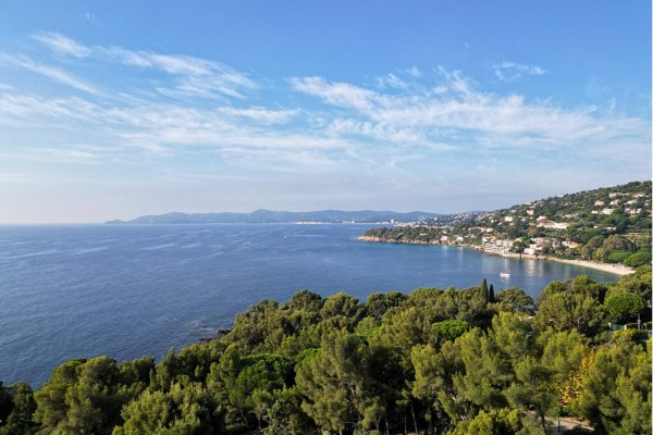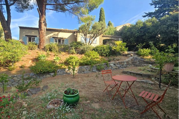 Weniger als zehn Minuten zu Fuß von den Stränden von Jean Blanc und Aiguebelle entfernt, liegt diese provenzalische Villa in einer geschützten Umgebung und bietet einen wunderschönen Blick auf die Vegetation, das Meer und die Inseln. Das Haus