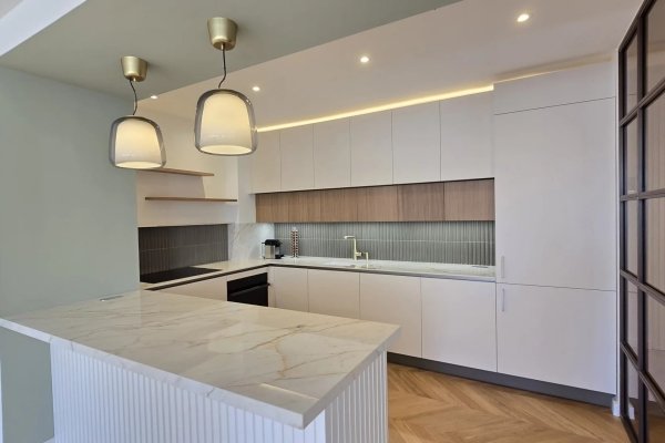 Im Herzen einer ikonischen Belle-Epoque-Residenz in Saint Raphael, im Goldenen Dreieck, wurde diese einzigartige 108 m² große Wohnung mit besonderer Sorgfalt, mit viel Liebe zum Detail und hervorragender Qualität entworfen. Helle Transparenz und
