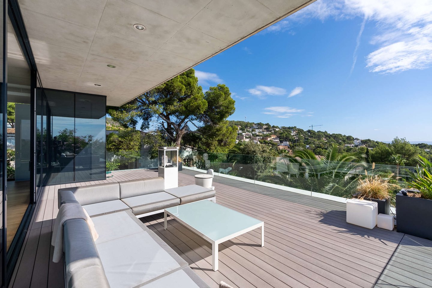 - Raumhohe Fensterfronten und Sonnenterrasse