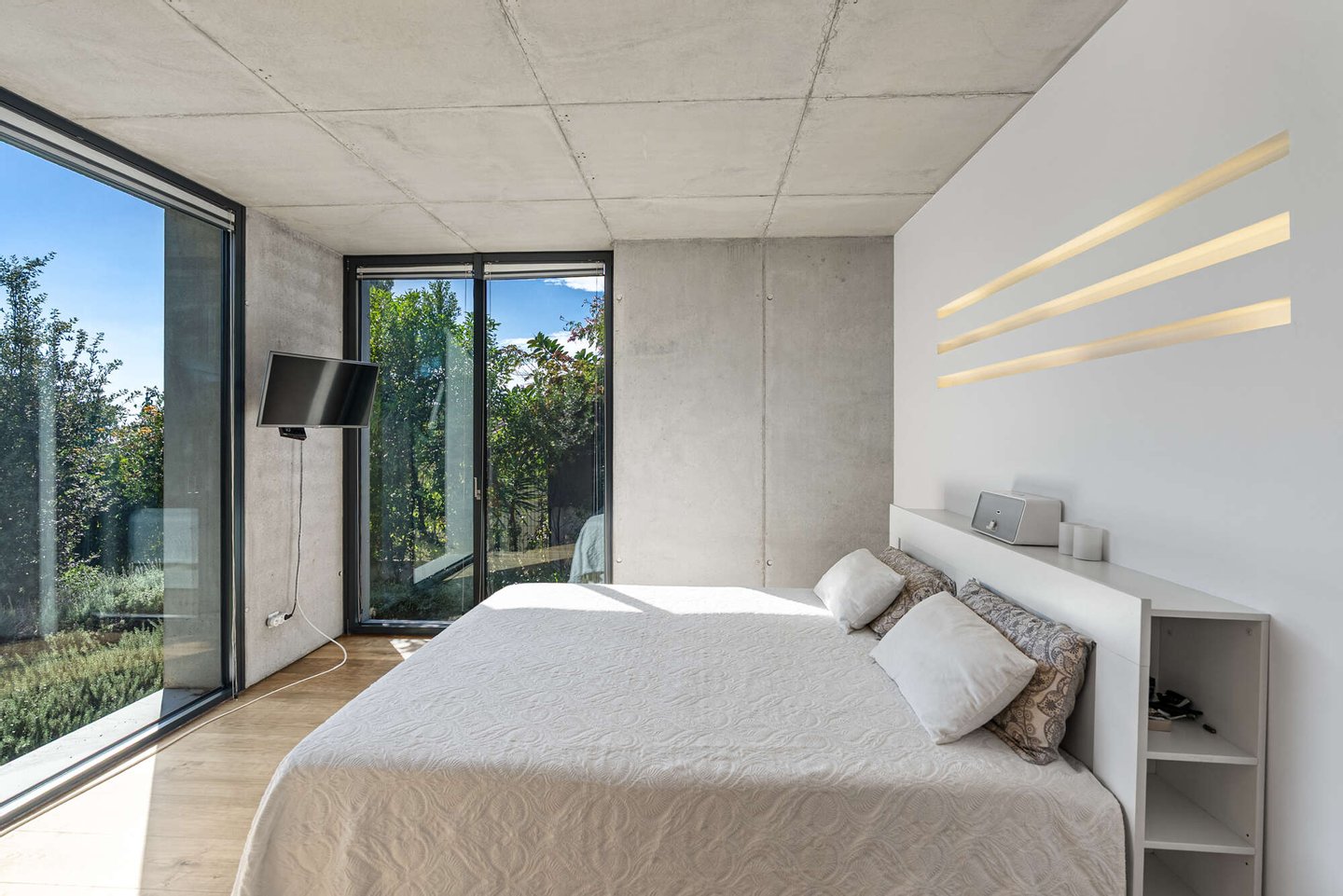 Schon beim Betreten eröffnet sich ein Wohngefühl von Weite und Licht. Die Ebenen sind harmonisch miteinander verbunden, klare Linien und großzügige Raumhöhen schaffen eine Atmosphäre voll zeitloser Ästhetik. Im Hauptwohnbereich erwartet den Bewohner ein exquisiter Master Bedroom mit privater Ankleide und ensuite Bad – ein Rückzugsort, der durch seine feinsinnige Gestaltung Ruhe und Geborgenheit ausstrahlt. Drei weitere, elegant ausgestattete Schlafzimmer sowie zwei stilvolle Bäder bieten höchsten Komfort für Familie und Gäste. Eine gemütliche TV-Lounge, die sich ebenso als Gästezimmer oder Fitnessbereich eignet, erweitert das vielseitige Raumensemble, während praktische Nebenräume diskret Funktionalität sicherstellen.