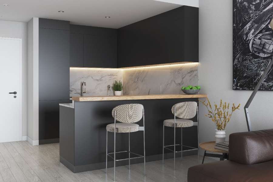 Im Inneren finden Sie eine wunderschön ausgestattete Einbauküche, die Sie zu kulinarischen Abenteuern inspirieren wird. Die luxuriöse Einrichtung der Wohnung schafft eine einladende Atmosphäre und sorgt für ein wahrhaft genussvolles Wohnerlebnis.
