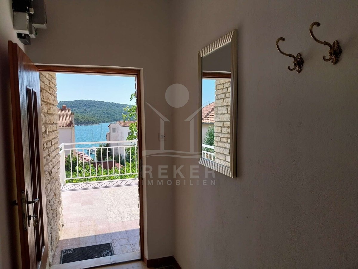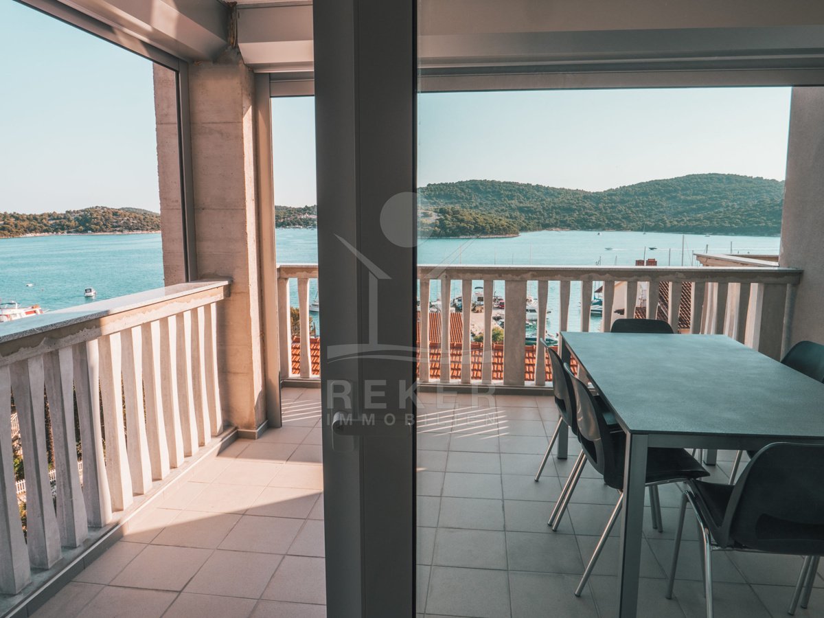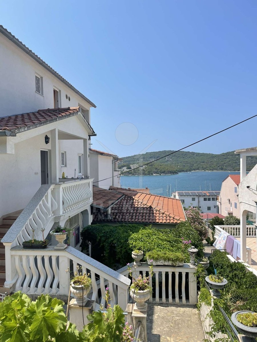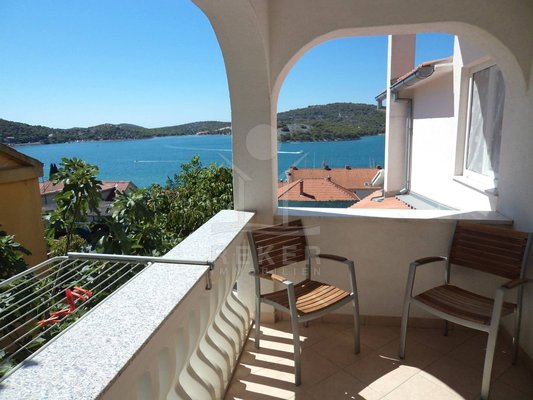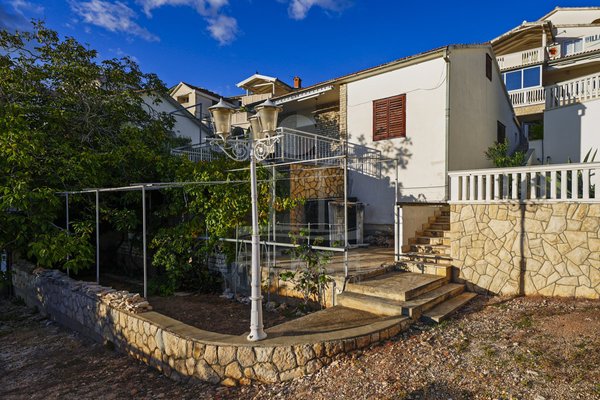 In Hanglage oberhalb der Bucht von Murter, nur etwa 80 Meter vom Meer und rund 400 Meter vom Zentrum von Tisno entfernt, erwartet Sie ein Apartmentensemble mit ruhiger Umgebung und weitem Blick über die Adria. Der kleine Kiesstrand mit Restaurant,