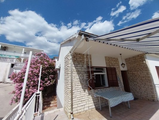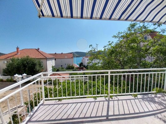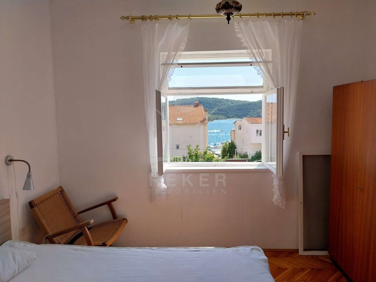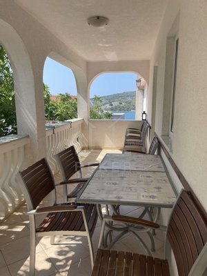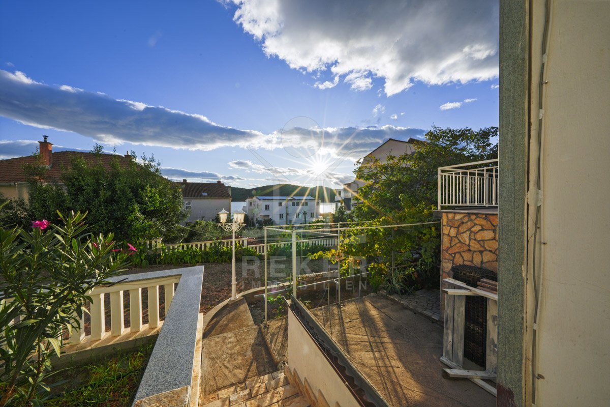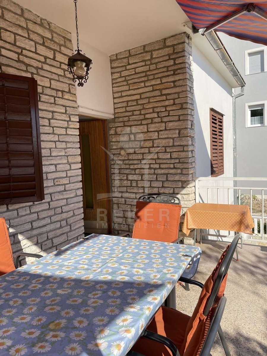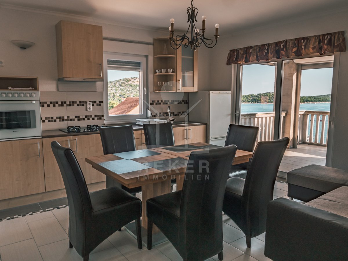 In Hanglage oberhalb der Bucht von Murter, nur etwa 80 Meter vom Meer und rund 400 Meter vom Zentrum von Tisno entfernt, erwartet Sie ein Apartmentensemble mit ruhiger Umgebung und weitem Blick über die Adria. Der kleine Kiesstrand mit Restaurant,