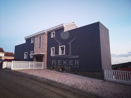 Das Areal umfasst 1.764 m² und vier Gebäude mit insgesamt 2.190 m² Fläche. Moderne Architektur und mediterranes Umfeld verbinden sich zu einer Mischung aus Komfort, Nutzungsspielraum und schönem Blick. Diese ruhige Umgebung und der freie Blick formen zusammen mit Neubauten und Bestandsgebäuden eine seltene Gelegenheit an der dalmatinischen Küste. Für Investoren und Familien bietet das Ensemble vielseitige Optionen in Meeresnähe.