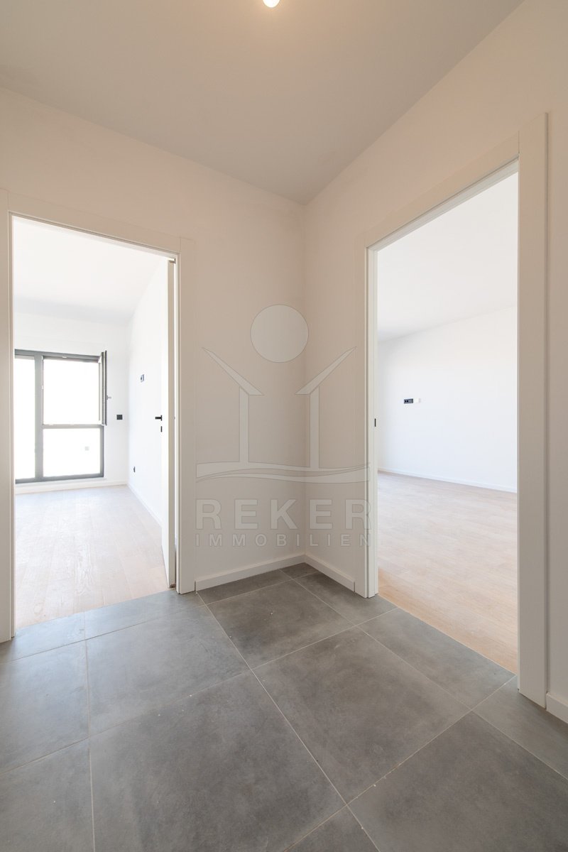 Umag, ein charmantes Küstenstädtchen an der Westseite Istriens. Hier steht ein modernes Wohnhaus, nur etwa 700 Meter vom Meer entfernt. Eine Lage, die Ruhe und Nähe zum Leben vereint. In der Umgebung finden Sie alles, was den Alltag angenehm macht: Geschäfte, Kindergarten, Schule, Krankenhaus sowie zahlreiche Sport- und Freizeitangebote, Restaurants und Cafés. Ob für den dauerhaften Aufenthalt oder den Urlaub – dieser Ort bietet ein angenehmes Umfeld zum Wohnen und Erholen.
