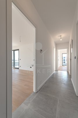 Das Gebäude umfasst vier Eingänge mit insgesamt 122 Wohnungen. Die Architektur wirkt klar, die Bauweise hochwertig. Großzügige Balkone schaffen zusätzlichen Raum im Freien. Jeder Eingang ist mit einem Aufzug ausgestattet, der direkt vom Garagenbereich zu den Wohnungen führt. Eine Innentreppe ergänzt das Konzept. Ein Wohnhaus, das Funktionalität und Stil auf harmonische Weise verbindet.