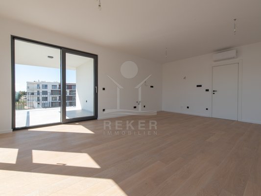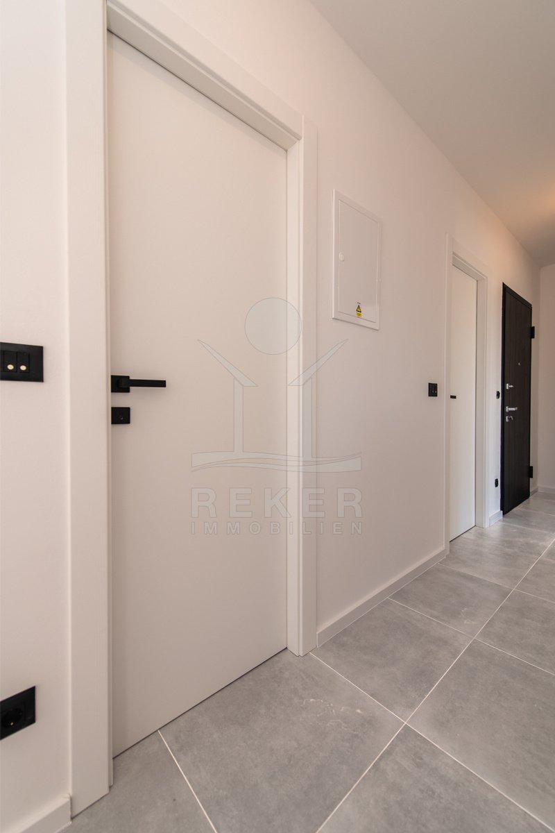 Umag, ein charmantes Küstenstädtchen an der Westseite Istriens. Hier steht ein modernes Wohnhaus, nur etwa 700 Meter vom Meer entfernt. Eine Lage, die Ruhe und Nähe zum Leben vereint. In der Umgebung finden Sie alles, was den Alltag angenehm macht: Geschäfte, Kindergarten, Schule, Krankenhaus sowie zahlreiche Sport- und Freizeitangebote, Restaurants und Cafés. Ob für den dauerhaften Aufenthalt oder den Urlaub – dieser Ort bietet ein angenehmes Umfeld zum Wohnen und Erholen.