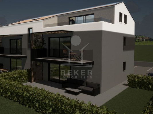 Die ruhige, grüne Umgebung nahe Poreč bildet einen angenehmen Rahmen für dieses kleine Neubauprojekt mit fünf Wohneinheiten. Sie wohnen abgeschirmt und erreichen die Adriaküste nach etwa zwei Kilometern. Das macht Ausflüge ans Meer unkompliziert. Der Neubau aus 2025 zeigt klare Linien und eine funktionale Raumaufteilung. Jede Wohnung erhält einen Stellplatz direkt vor dem Haus.