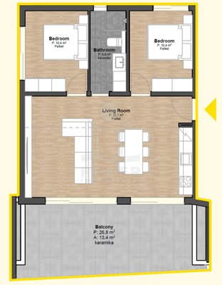 60 m² Wohnfläche, sonnige Ausrichtung und klare Architektur im 2. Obergeschoss