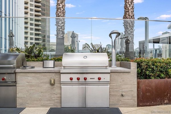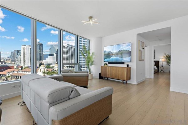Tauchen Sie ein in ein erhöhtes Küstenleben im Pacific Gate, San Diegos begehrtem Wohnturm. Im 10. Stock gelegen, bietet diese offene und geräumige Eckwohnung mit 2 Schlafzimmern + Arbeitszimmer und 2,5 Bädern Panoramablicke auf die Bucht und die Stadt durch weitläufige Glaswände. Sorgfältig gestaltet, bietet dieses großzügige Layout einen offenen Wohnbereich im natürlichen Licht, eine elegante Kochküche mit hochwertigen Wolf-, Sub-Zero- und Miele-Geräten sowie wunderschön kuratierte Oberflächen im gesamten Raum. Die geräumige Hauptsuite verfügt über ein spa-inspiriertes Badezimmer und einen großzügigen begehbaren Kleiderschrank von California Closets, während das zweite Schlafzimmer im Suite-Raum den Gästen Privatsphäre und einen unglaublichen Blick auf die Bucht bietet. Das Arbeitszimmer/Büro bietet Flexibilität als drittes Bett oder als privates Homeoffice. Die große, private überdachte Terrasse bietet einen einladenden Raum, um zu entspannen und die lebendigen Sonnenuntergänge San Diegos zu genießen. Zu den Resort-Annehmlichkeiten gehören eine 45 Fuß lange Yachtshare, eine luxuriöse Autoflotte, ein Kochconcierge, eine Gästesuite, eine Poolterrasse mit Cabanas, eine Lounge der Bewohner mit Cateringküche, ein hochmodernes Fitnesscenter mit Sauna und Dampfbad, ein Vorführraum, ein Hundelauf und ein vor Ort geführtes Restaurant mit Promi-Kochen. Genießen Sie den luxuriösen Küstenlebensstil im einzigen Super Prime Wohnturm San Diegos. Pacific Gate befindet sich in Millionaire's Row und ist nur wenige Schritte vom Hafen, Seaport Village, dem Rady Shell, Restaurants und Luxusboutiquen entfernt. Der erste komplett verglaste Super Prime Wohnturm in San Diego bietet einen beispiellosen Lebensstil am Wasser mit himmelhohen Annehmlichkeiten und Postkartenblicken. Mit direktem Blick auf die Wasserfront bietet der 41-stöckige Turm ein exklusives Angebot an von Hirsch Bedner Associates entworfenen Häusern. Das renommierte New Yorker Architekturbüro Kohn Pedersen Fox (KPF) schuf ein Wahrzeichen, das die Skyline von San Diego neu gestaltete. Die maßgefertigten Glaswände spiegeln dynamisch die Farben des Himmels und des Pazifischen Ozeans wider. Pacific Gate hat die Skyline von San Diego weiterentwickelt und repräsentiert die Zukunft der Stadt. Das Gebäude besteht aus zwei verschachtelten, gebogenen Glastürmen, die als einzelne Säule von einem dreistöckigen Einzelhandelspodium im Erdgeschoss an der Nord- und Westseite des Turms emporragen. Dank der Kurven und des Außenglases des Gebäudes bietet Pacific Gate von jedem Blickwinkel aus ein beeindruckendes Beobachtungserlebnis.