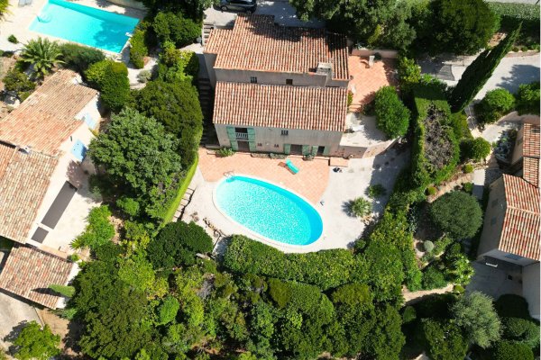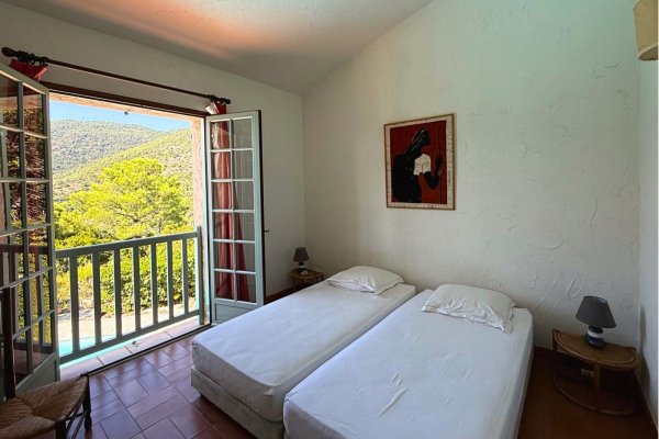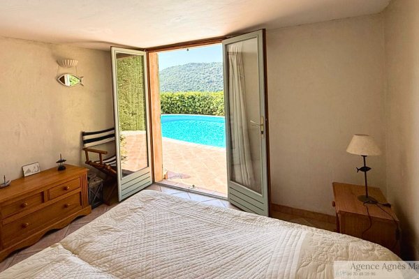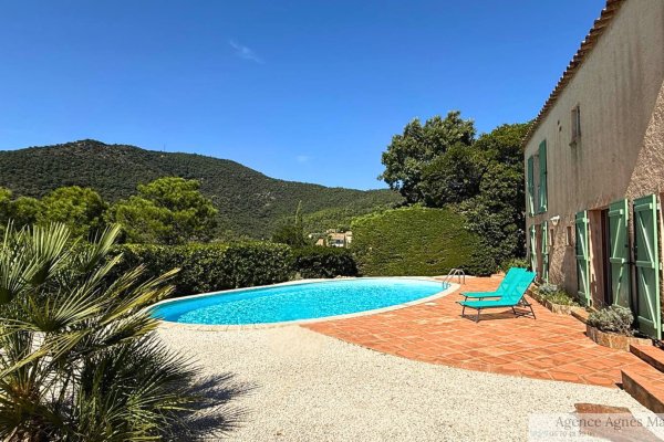 In the heart of a quiet and green environment, this house of 130 m2 of living space, built in 1981 on a flat plot of 976 m2, offers an ideal living environment for a family in search of space and serenity. As soon as you enter, you will be seduced by the generosity of the volumes and the high ceilings which give the living room a warm and friendly atmosphere. The large living room, with a wood-burning stove, opens directly onto the terrace: a perfect space to share meals and extend the sunny days outside. The independent kitchen, practical and functional, also benefits from access to the outside. The sleeping area consists of a first bedroom with cupboard and hallway, a bathroom with double sink and a separate toilet. A mezzanine converted into a sleeping area completes this level. Two additional bedrooms, one of which has a private bathroom and toilet, enjoy access to the terrace and a view of the swimming pool. Outside, an independent annex hosts two additional bedrooms with storage, a shower room, a toilet and a cellar. The garden, fully enclosed and embellished with an 11 x 5 m swimming pool, offers complete privacy and an ideal setting to relax under the Mediterranean sun. Several vehicles can be parked within the property. In terms of comfort, heating is provided by individual electrical equipment, complemented by the wood stove which diffuses a pleasant warmth in winter. A rare opportunity at Rayol Canadel, combining comfort, space and tranquility.