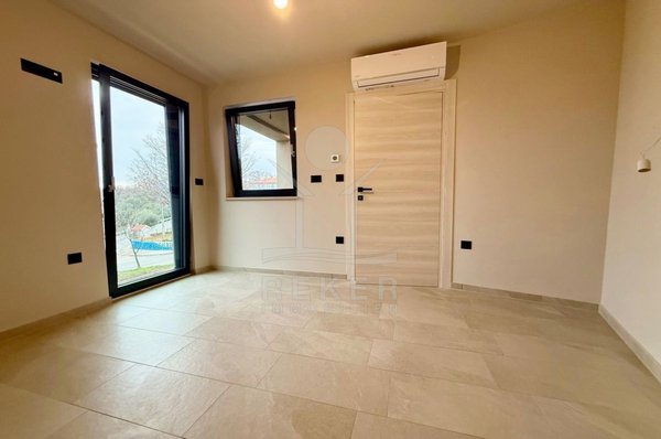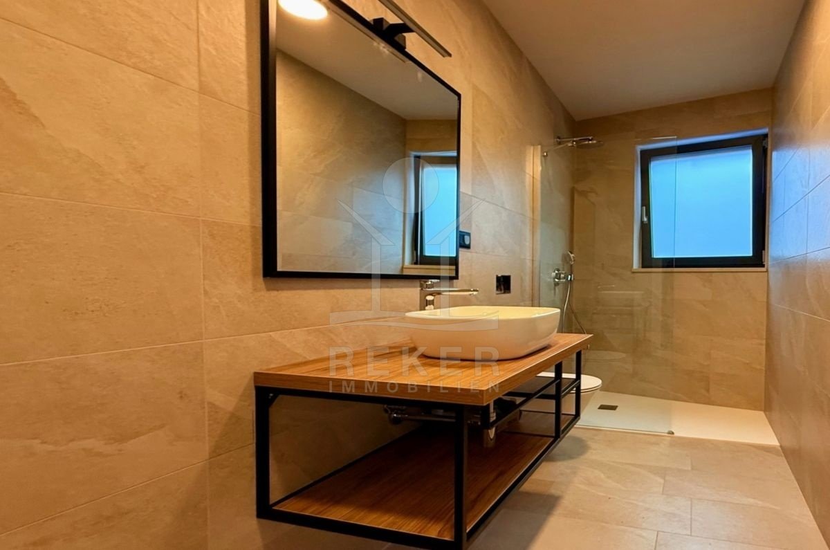 In Omišalj auf der Insel Krk treffen Ruhe und Natur aufeinander. Das Wohnhaus steht inmitten von Grün, umgeben von Wald und mediterraner Landschaft, nur rund 600 Meter vom Meer entfernt. Hier genießen Sie die Nähe zur Adria und zugleich ein stilles
