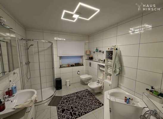 Hauptbad mit Badewanne, Dusche und Bidet