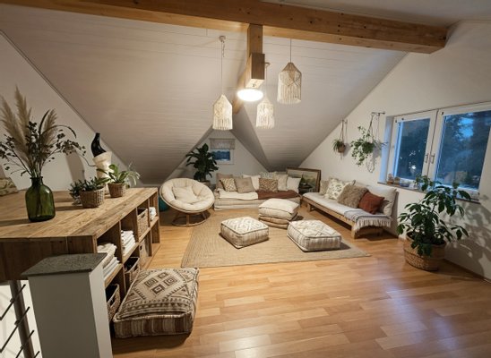 Im Erdgeschoss erwartet Sie ein sonniges Wohnzimmer mit direktem Zugang zur Terrasse, ideal für ...mehr lesen