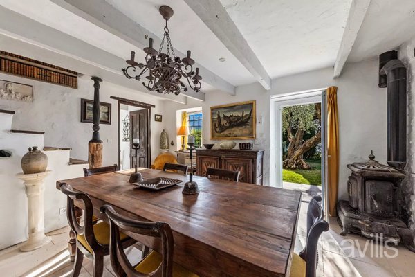 Das Haus erstreckt sich über drei Ebenen und verfügt über einen hellen 30 m² großen Empfangsraum mit Kamin, einen einladenden Essbereich, eine eigene Küche, sechs Schlafzimmer, zwei Badezimmer, zwei Duschräume und großzügigen Stauraum. Ein unabhängiges Studio und ein Anbau von etwa 35 m², die Renovierungsmöglichkeiten bieten, vervollständigen das Anwesen.