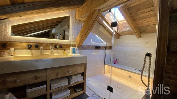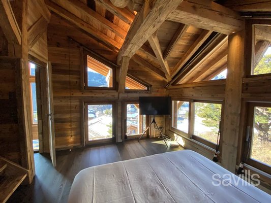 Das Chalet bietet vier Schlafzimmer mit eigenem Bad, darunter eine Master-Suite mit Hammam-Dusche, sowie einen zusätzlichen Wohnbereich mit Küche, der in ein zusätzliches Schlafzimmer umgewandelt werden kann.