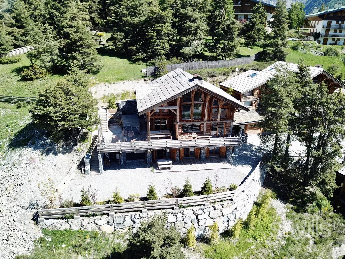 Das Grundstück umfasst ein spektakuläres, doppelt ausgerichtetes Wohnzimmer mit Kamin und eine offene Küche, die auf Terrassen nach Süden und Westen ausgerichtet ist. Ein Schwimmbad mit Bergblick.