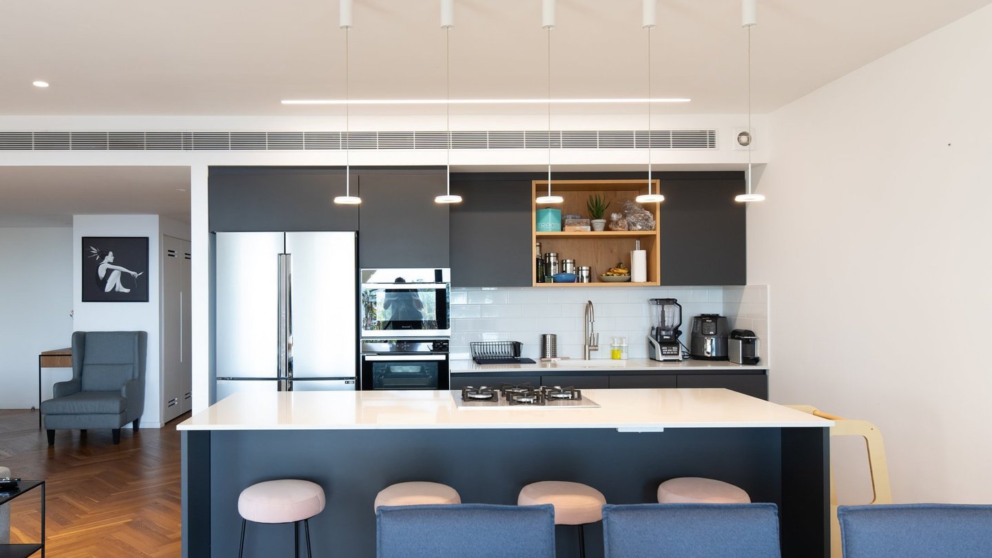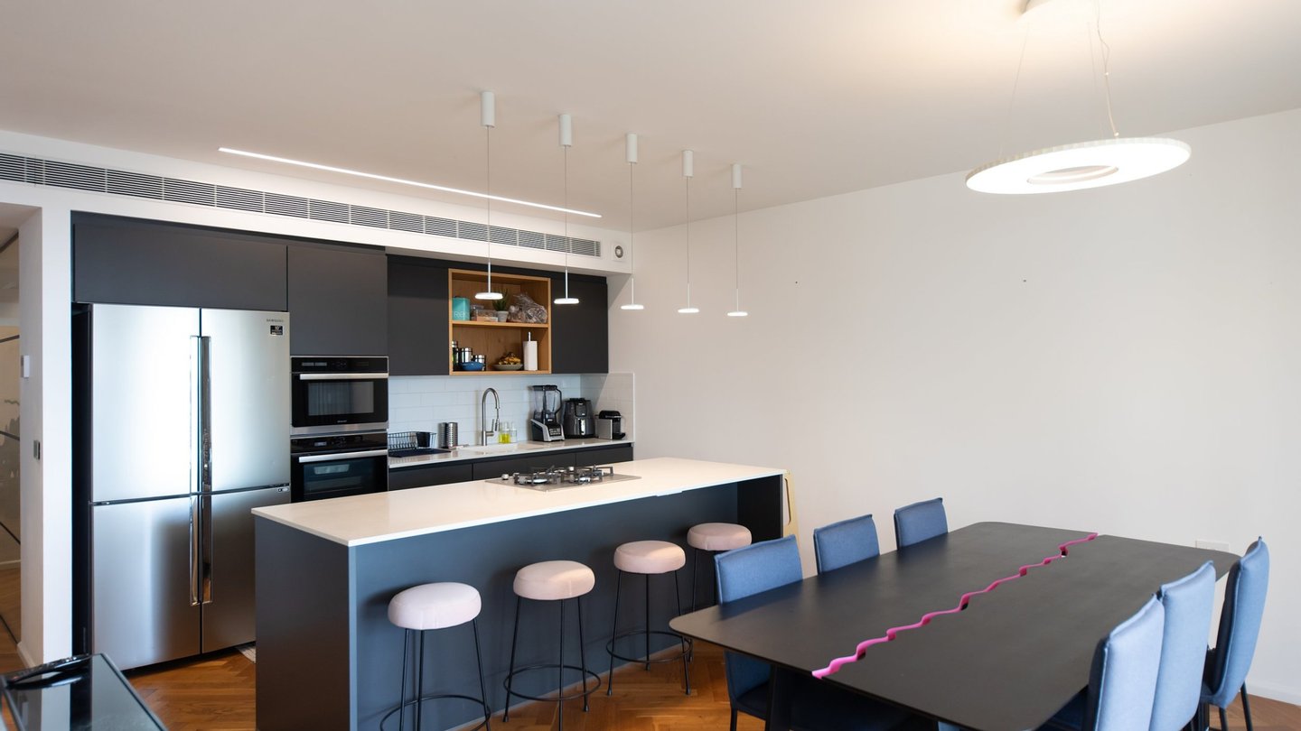 Die Wohnung bietet Premium-Ausstattung und einen hochwertigen Finish-Standard und bietet eine aufgewertete Küche mit einer geräumigen Kücheninsel, die das Herz des Haus- und Unterhaltungszentrums bildet, dazu einen geräumigen Essbereich, hochwertige Massivholzböden in der gesamten Wohnung, kombiniert mit sorgfältig gestalteter Tischlerei mit intelligenten Aufbewahrungslösungen, die jeden Zentimeter ausnutzen. Die großzügigen und beeindruckenden Proportionen der Wohnung werden durch elektrische Jalousien betont, die eine perfekte Kontrolle über die Menge des natürlichen Lichts in den Raum ermöglichen. Die Wohnung wird WIE ER verkauft, mit sorgfältig ausgewählten Designermöbeln, um das höchste Wohnerlebnis zu schaffen.