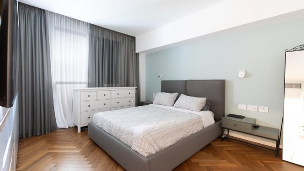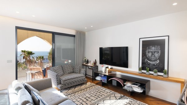 Geräumige und gestaltete 2-Zimmer-+-Bürowohnung im Andromeda-Jaffa-Komplex, mit sorgfältiger Planung, einem außergewöhnlich offenen und großzügigen öffentlichen Bereich, großzügigen Proportionen und reichlich Tageslicht. Die Wohnung verfügt über eine ausgestattete und modernisierte Küche, maßgefertigte Tischlerei, Klimaanlage und bietet einen atemberaubenden Panoramablick auf das Meer.
