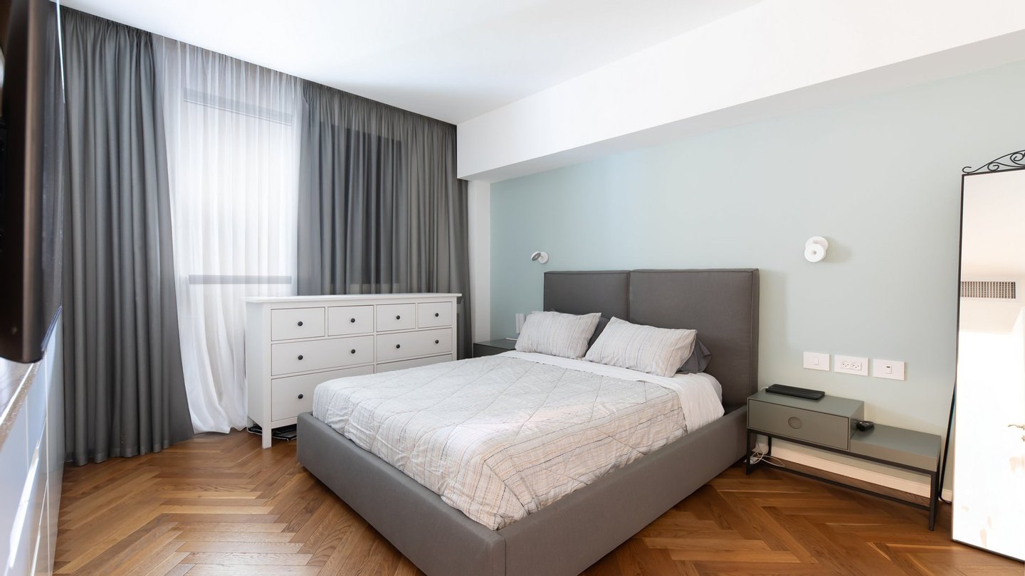 Die Wohnung bietet Premium-Ausstattung und einen hochwertigen Finish-Standard und bietet eine aufgewertete Küche mit einer geräumigen Kücheninsel, die das Herz des Haus- und Unterhaltungszentrums bildet, dazu einen geräumigen Essbereich, hochwertige Massivholzböden in der gesamten Wohnung, kombiniert mit sorgfältig gestalteter Tischlerei mit intelligenten Aufbewahrungslösungen, die jeden Zentimeter ausnutzen. Die großzügigen und beeindruckenden Proportionen der Wohnung werden durch elektrische Jalousien betont, die eine perfekte Kontrolle über die Menge des natürlichen Lichts in den Raum ermöglichen. Die Wohnung wird WIE ER verkauft, mit sorgfältig ausgewählten Designermöbeln, um das höchste Wohnerlebnis zu schaffen.