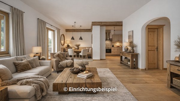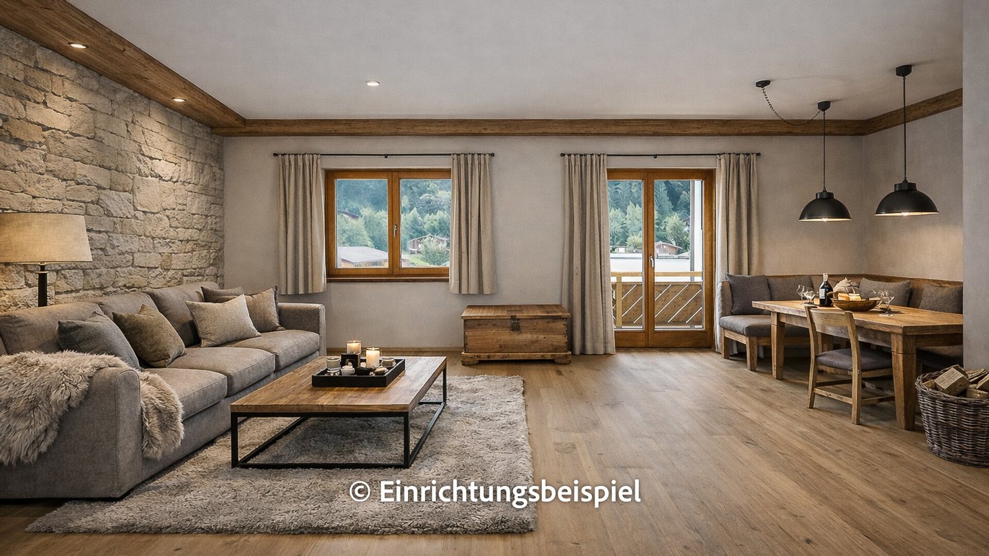 Sodann gelangt man in das großzügige Wohn/Esszimmer und von hier auf den weiteren ca. 9 m² großen Balkon mit schönem Blick auf den Hahnenkamm.