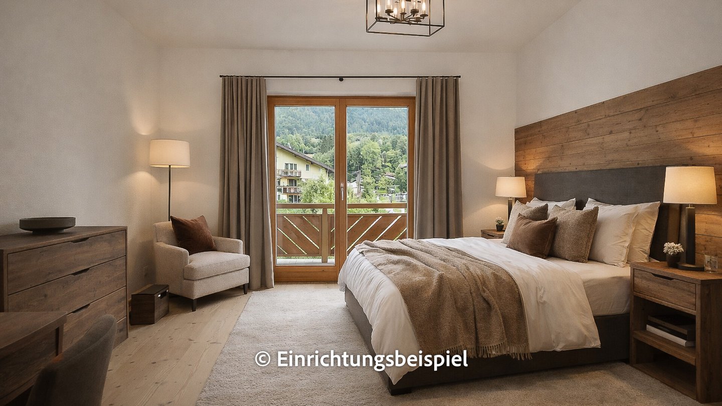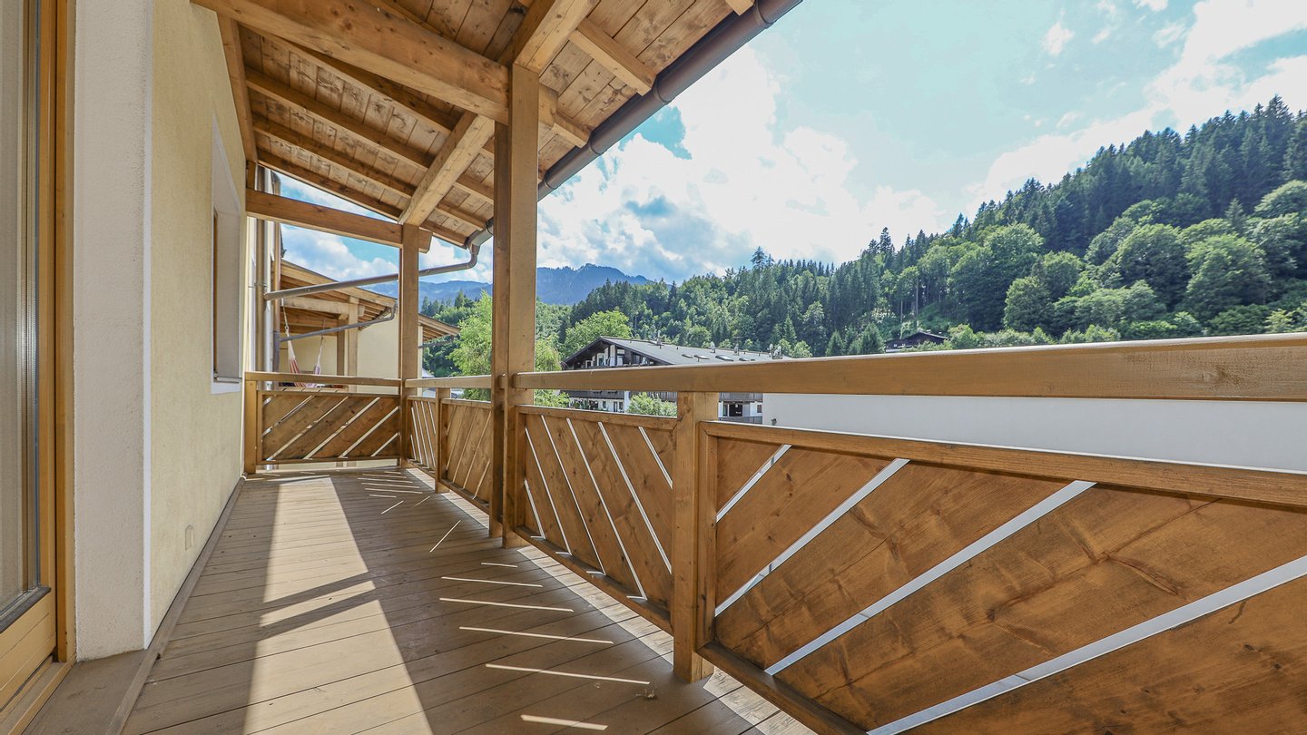 Von jedem der beiden ostseitig gelegenen Schlafzimmern gelangt man auf den ca. 9 m² großen Balkon mit schönem Ausblick auf das Kitzbüheler Horn.