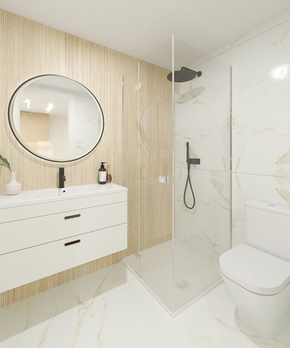 Die Häuser werden nach aufwendigen Standards gefertigt. Bei der Verarbeitung wurde auf hochwertige Materialien und sorgfältigste Ausführung größten Wert gelegt. Inbegriffen sind unter anderem Fenster mit Doppelverglasung, Sicherheitstüren, moderne Einbauküchen mit Dunstabzugshauben, elektrische Rollläden, Einbauschränke in den Schlafzimmern sowie eine Klimaanlagenvorinstallation. In der Wohnanlage gibt es einen Gemeinschaftspool und einen privaten Kfz-Stellplatz für jedes Haus.