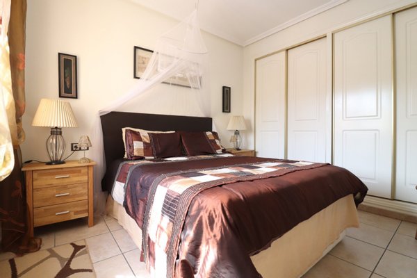 Diese freistehende Villa mit fünf Schlafzimmern und Südausrichtung verfügt über einen schönen Wohnbereich, der auf eine überdachte Terrasse führt - der perfekte Ort, um Ihren Morgenkaffee zu genießen oder im Schatten im Freien zu speisen. Die separate, voll ausgestattete Küche bietet viel Arbeitsfläche und Stauraum, während alle Schlafzimmer über Einbauschränke und eine Klimaanlage für ganzjährigen Komfort verfügen. Das Hauptschlafzimmer verfügt über ein eigenes Bad.
