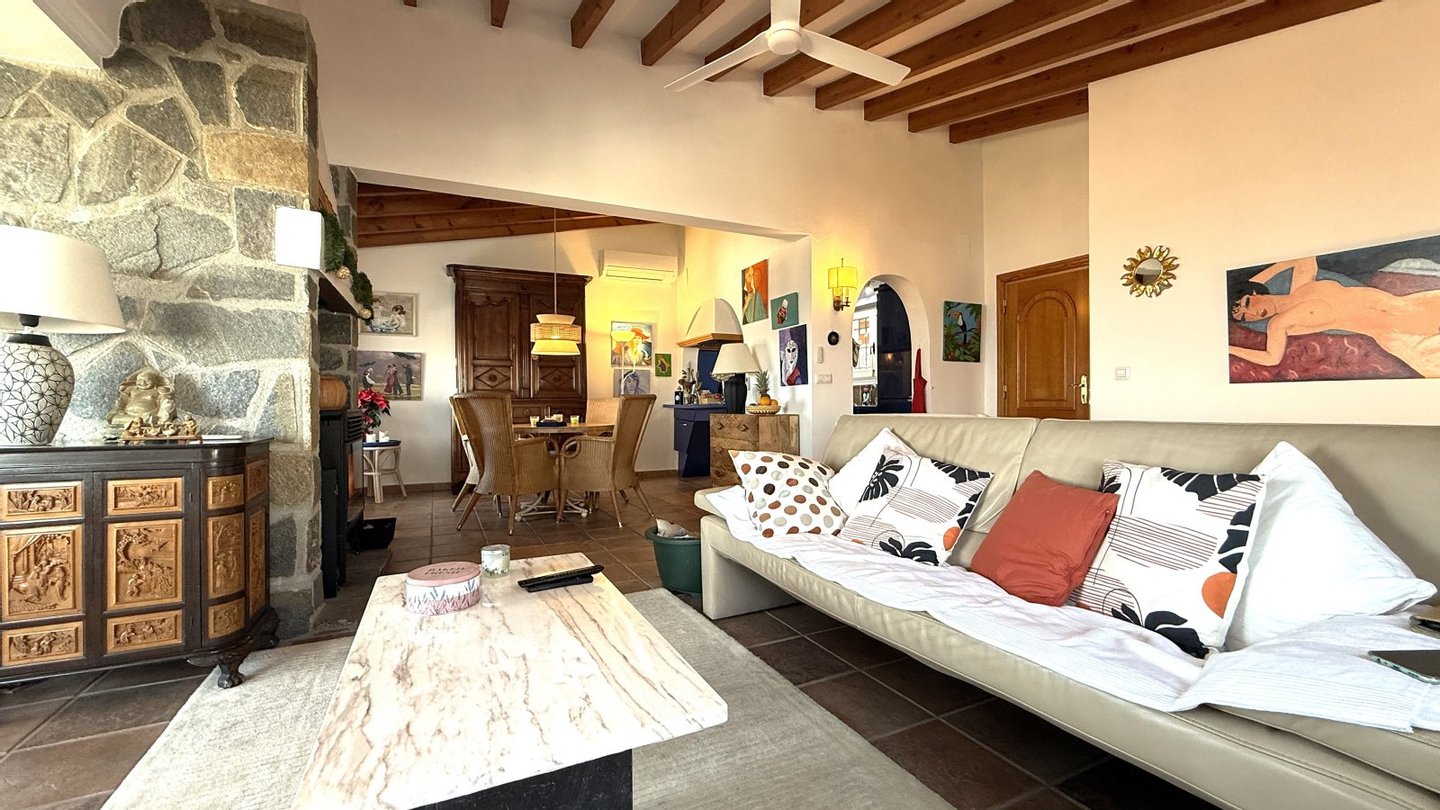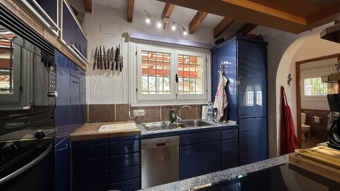 Diese gepflegte Immobilie am Monte Pego bietet eine schöne Aussicht und eine praktische Aufteilung auf zwei Ebenen. Auf der Hauptebene befindet sich ein offener Wohnbereich mit großen Fenstern sowie eine offene Küche. Ebenfalls auf dieser Etage liegt ein Gäste-WC.