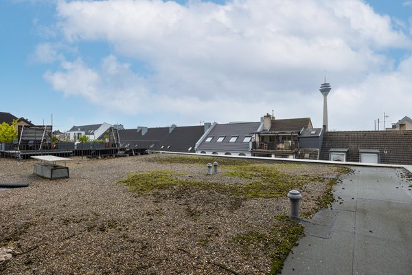 Ein besonderes Highlight der schicken Wohnung ist ein Sondernutzungsrecht eines Teils der Dachfläche. Hier könnten Sie sich eine Dachterrasse über den Dächern von Düsseldorf gestalten.