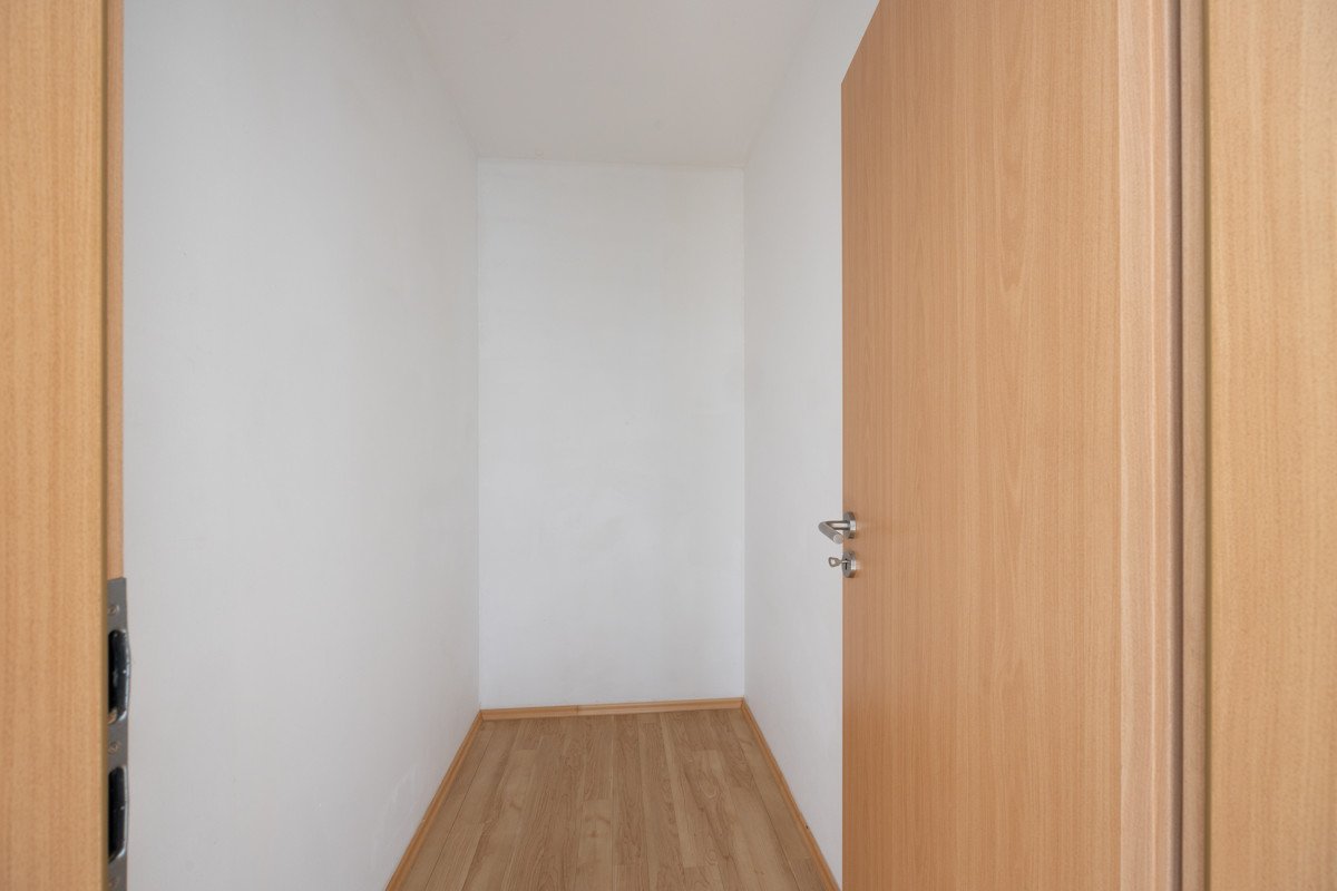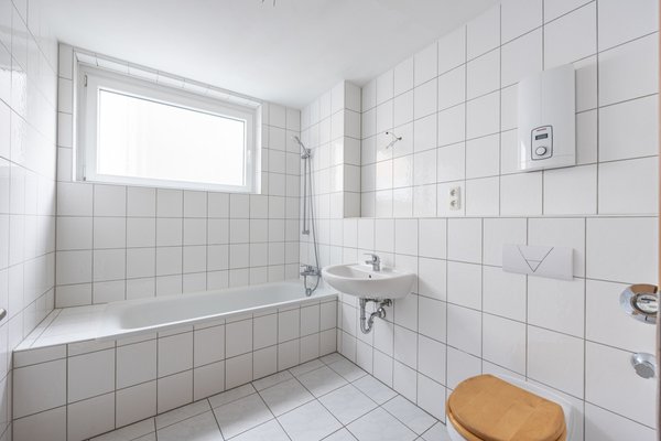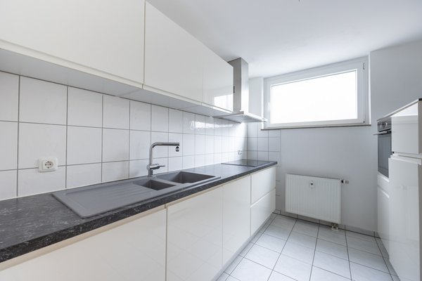 Auf der gegenüberliegenden Seite der Wohnung befinden sich das ruhig gelegene Schlafzimmer sowie eine großzügige Küche. Das geräumige, hellgeflieste Badezimmer mit Tageslicht bietet ausreichend Platz für eine Badewanne. Der Abstellraum in der Wohnung wäre auch als Kleiderschrank oder Garderobe nutzbar.