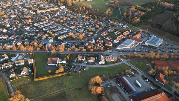 Einkaufsmöglichkeiten (REWE-Supermarkt mit Bäcker und Fleischtheke sowie ALDI) sind in unmittelbarer Nähe (ca. 2 Gehminuten) vorhanden. Die nächste Bushaltestelle ist ca. 5 Gehminuten (ca. 500 m) entfernt. Grundschule, Mehrzweckhalle und Kindergarten befinden sich in ca. 650 m Entfernung.