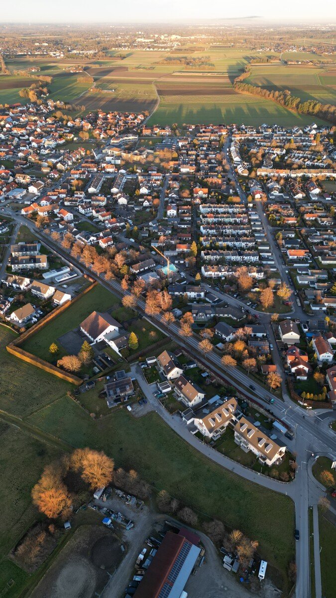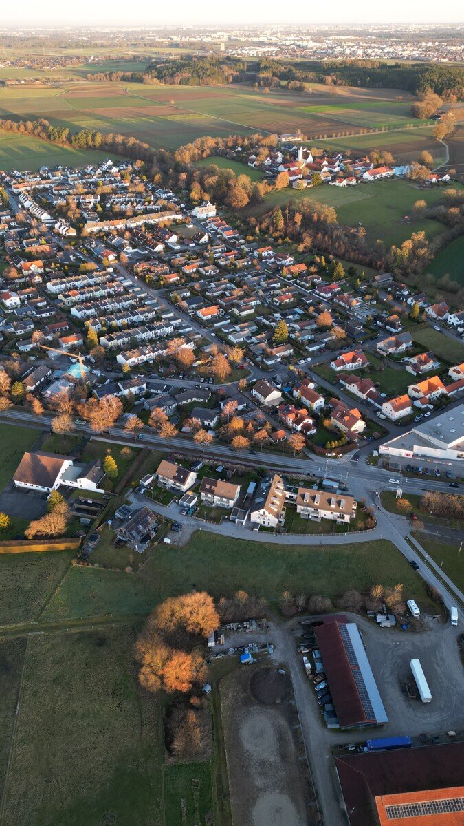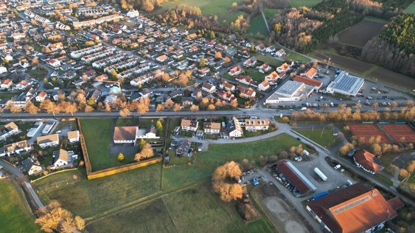 Die Grundstücke bzw. das Grundstück befindet sich in herrlicher Lage in 82239 Alling, Kiebitzweg (ruhige Anwohnerstraße, momentan Sackgasse). Die Grundstücke sind perfekt nach Westen und Süden hin ausgerichtet. In westlicher Richtung ist die Umgebung überwiegend durch Grünflächen und Landwirtschaft geprägt. Östlich der Zufahrtsstraße befinden sich ein niveauvolles Mehrfamilienhaus, sowie Doppelhäuser. Südlich befindet sich das Sportareal des TSV Alling.
