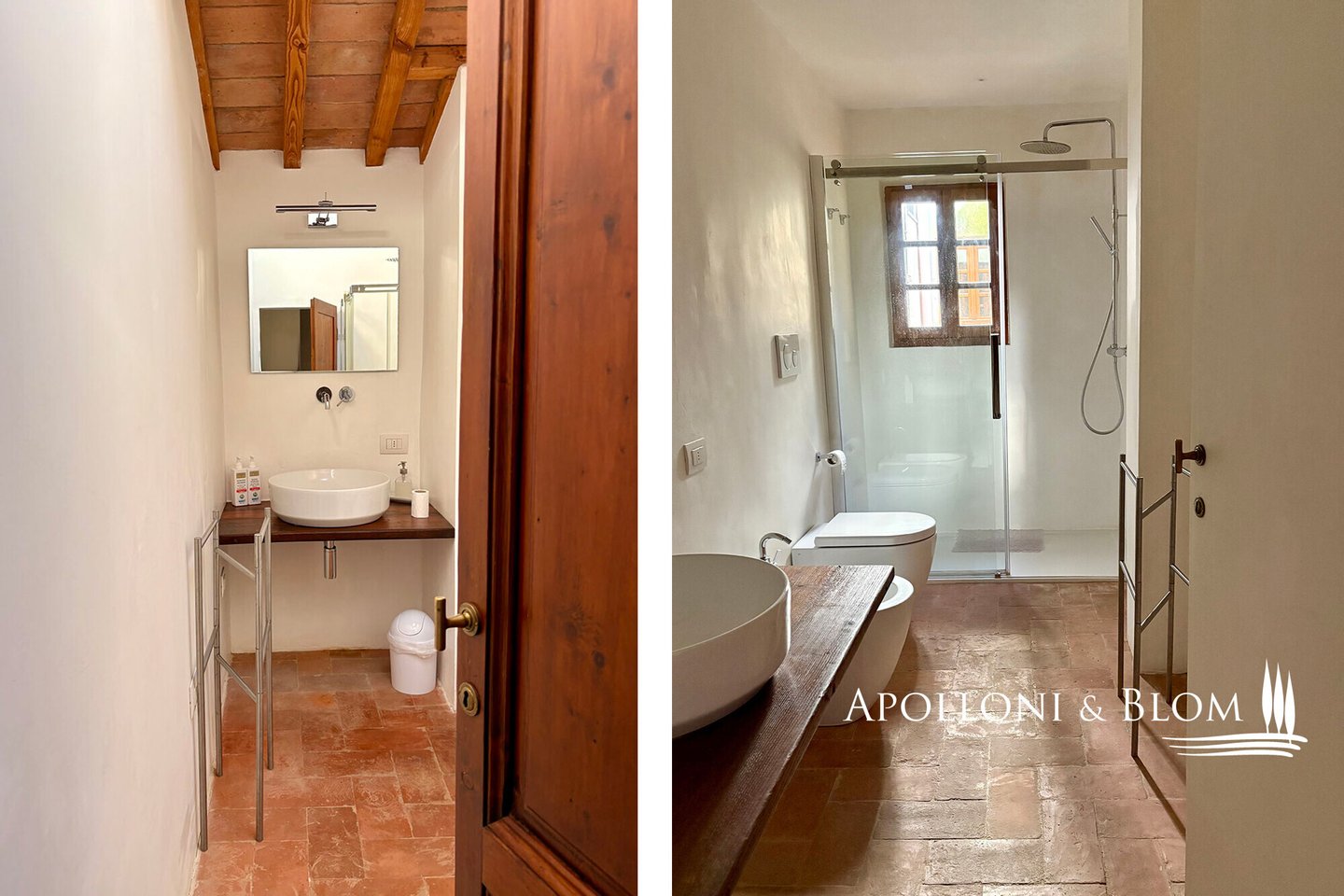 Typ: Teil einer historischen Villa, Ecklage, Fläche von 518 Quadratmetern (468 Quadratmeter auf drei Ebenen oberhalb des Erdgeschosses, 50 Quadratmeter Gewölbekeller im Untergeschoss), Garten mit Belvedere und Möglichkeit zum Bau eines privaten Swimmingpools, landwirtschaftliche Nebengebäude von insgesamt 110 Quadratmetern, ein Vordach von 24 Quadratmetern, landwirtschaftliche Flächen in einem einzigen Körper von über 5 Hektar, bestehend aus Weiden und Koppeln für Pferde, Wald, Olivenhain, Ackerland und Obstgarten