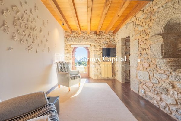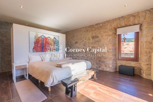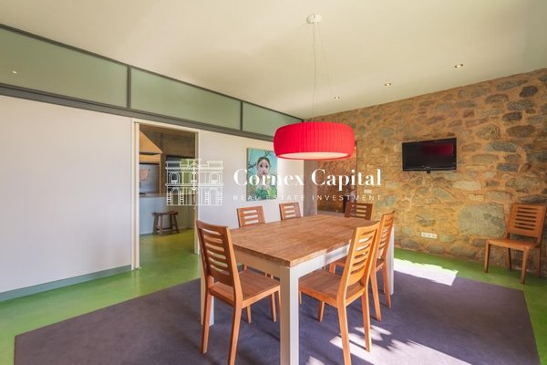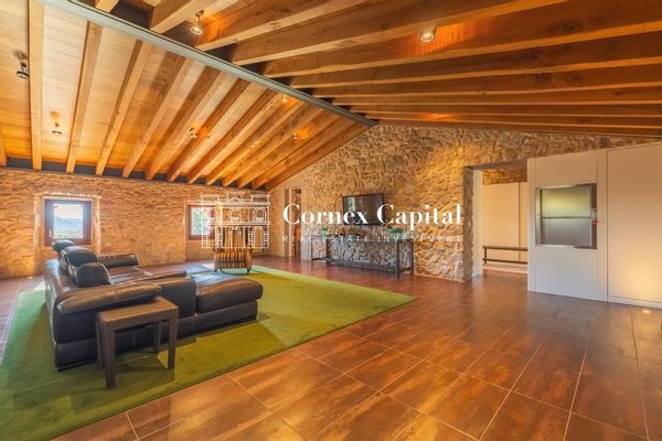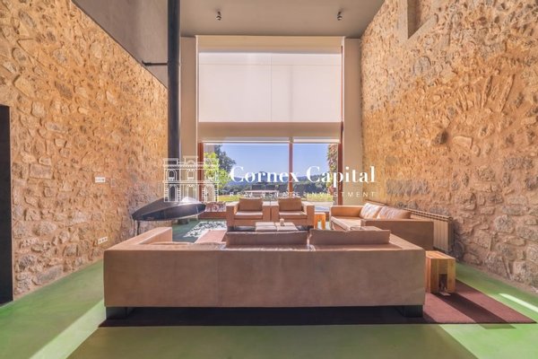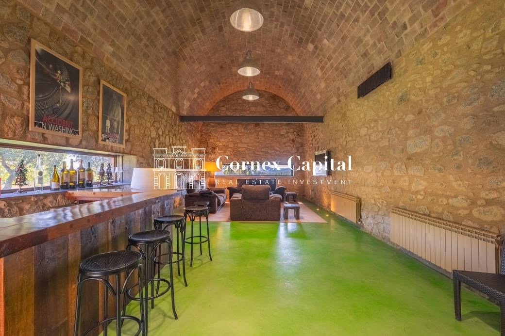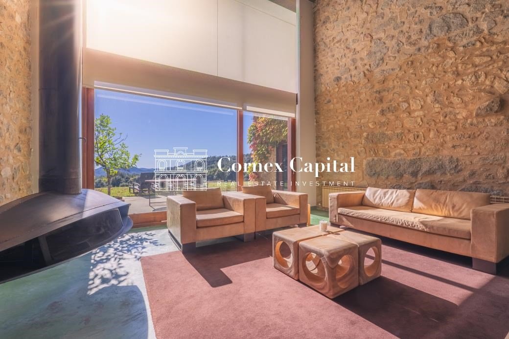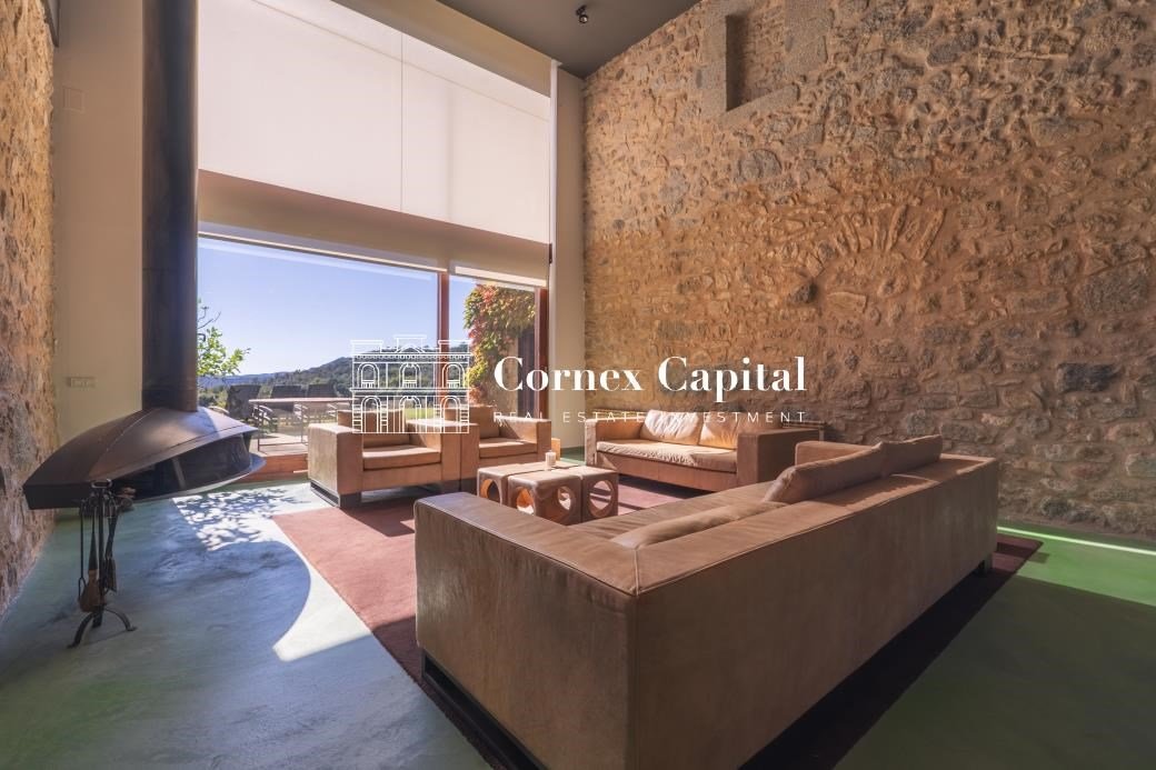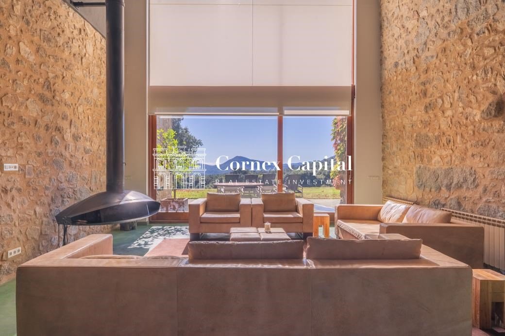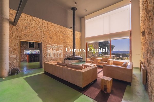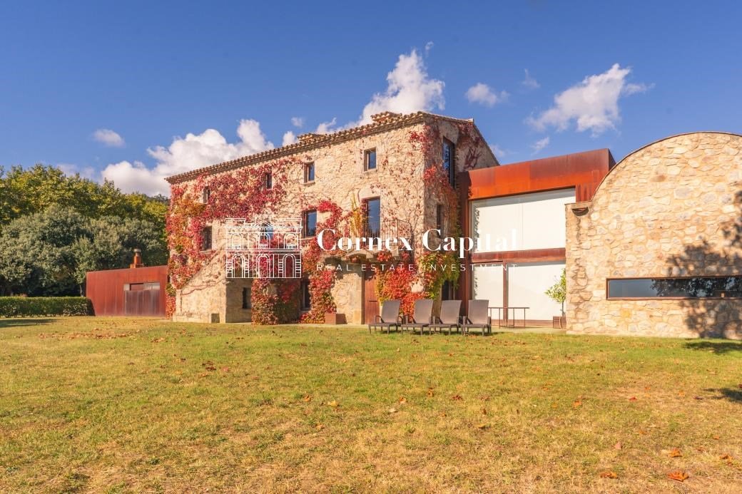Entdecken Sie dieses atemberaubende, sorgfältig renovierte Luxuslandhaus, eine Mischung aus traditioneller katalanischer Architektur und anspruchsvollem modernem Design. Das Grundstück umfasst das Haupthaus und ein separates Hausmeisterhaus, beide