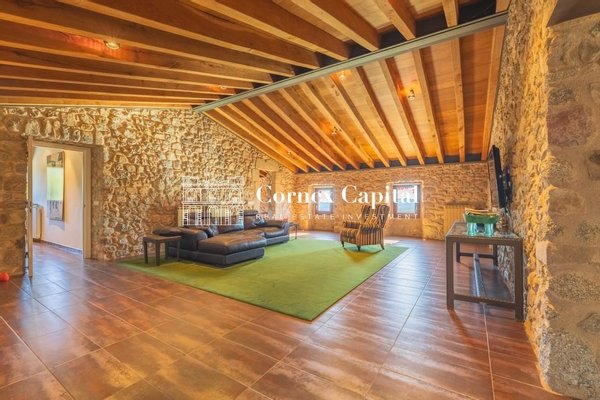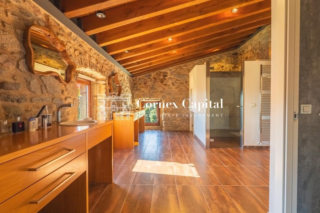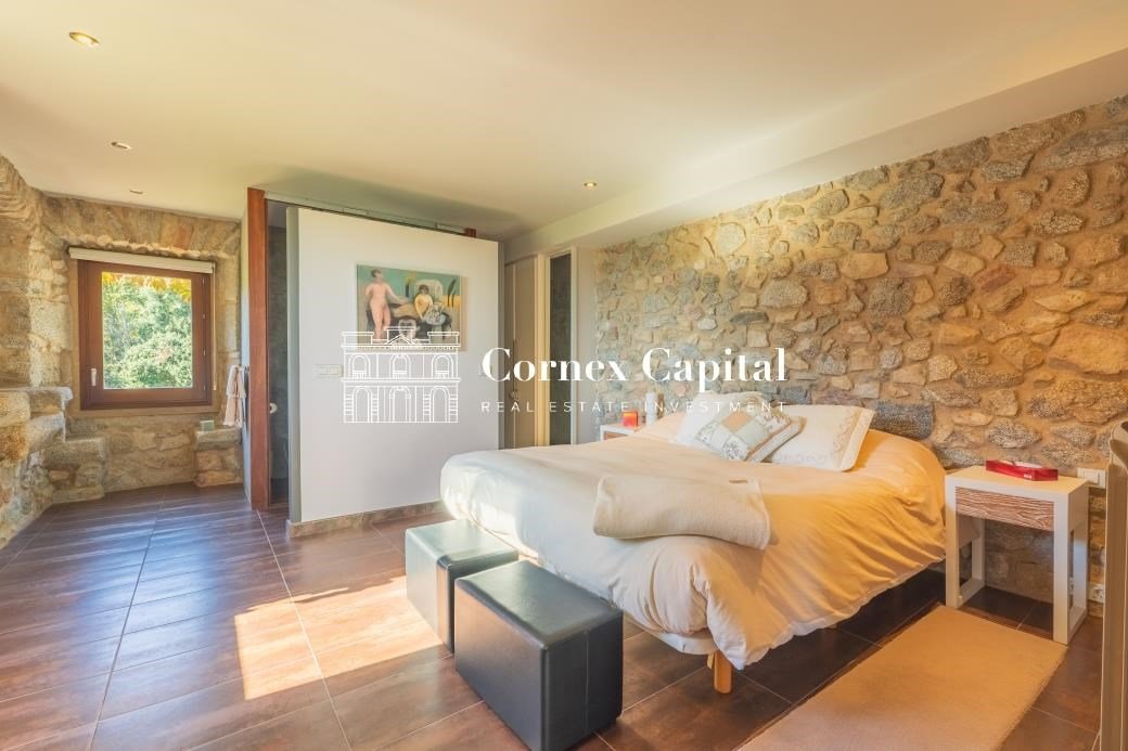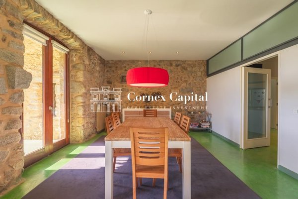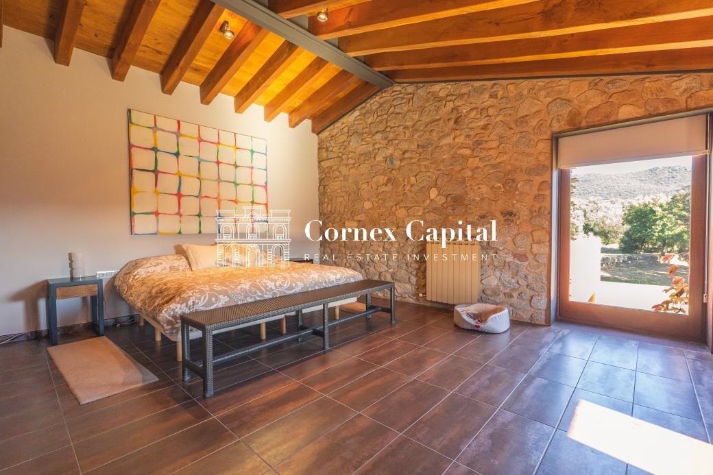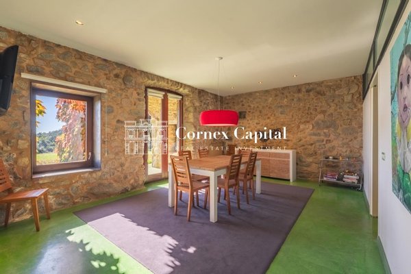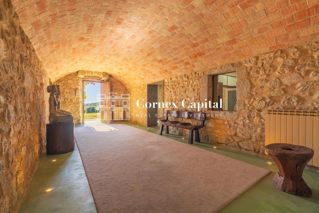 Entdecken Sie dieses atemberaubende, sorgfältig renovierte Luxuslandhaus, eine Mischung aus traditioneller katalanischer Architektur und anspruchsvollem modernem Design. Das Grundstück umfasst das Haupthaus und ein separates Hausmeisterhaus, beide nach Süden ausgerichtet, mit 1.270 m² Wohnfläche auf 150 Hektar Privatland, umgeben von Korkeichen und üppiger Vegetation.