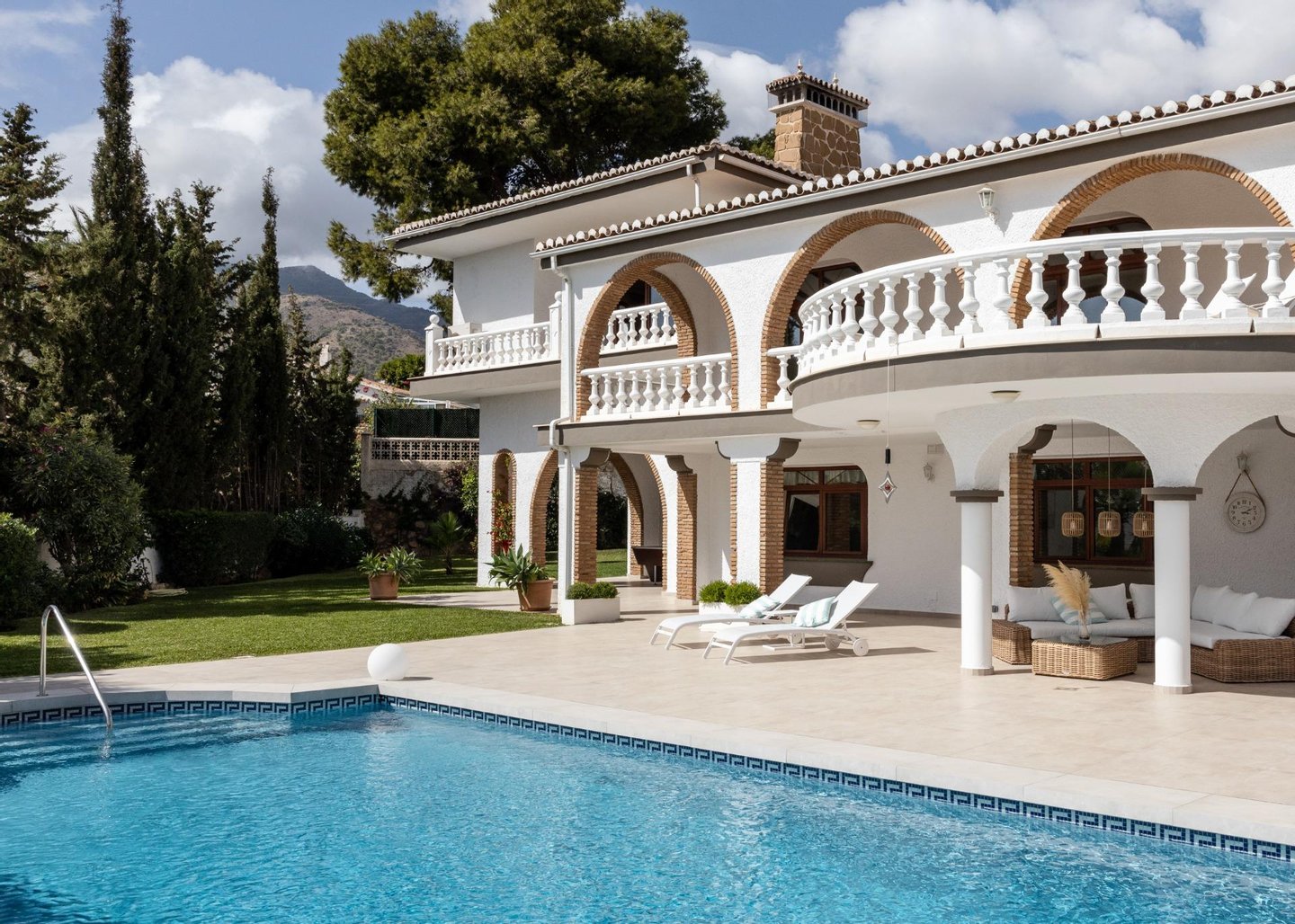 Ihr eigenes privates Paradies, eine charmante Villa mitten an der Costa del Sol. Diese Immobilie verbirgt eine Menge wunderbarer Details. Das Eingangsgeschoss verfügt über einen großen Saal, ein Speisesaal, eine Küche, einen Hauswirtschaftsraum, viele Terrassenflächen, einen großen Innenhof, eine Garage für zwei Autos und einen Eingang zum Nordflügel des Gebäudes, der eine riesige Suite mit eigenem Badezimmer, einem begehbaren Kleiderschrank und einer eigenen Terrasse besitzt. Im Erdgeschoss gibt es fünf Schlafzimmer, jedes mit eigenem Badezimmer. Außerdem gibt es einen separaten Raum sowie ein Badezimmer für Gäste und natürlich Zugang zum Poolbereich.