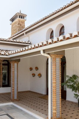 Ihr eigenes privates Paradies, eine charmante Villa mitten an der Costa del Sol. Diese Immobilie verbirgt eine Menge wunderbarer Details. Das Eingangsgeschoss verfügt über einen großen Saal, ein Speisesaal, eine Küche, einen Hauswirtschaftsraum, viele Terrassenflächen, einen großen Innenhof, eine Garage für zwei Autos und einen Eingang zum Nordflügel des Gebäudes, der eine riesige Suite mit eigenem Badezimmer, einem begehbaren Kleiderschrank und einer eigenen Terrasse besitzt. Im Erdgeschoss gibt es fünf Schlafzimmer, jedes mit eigenem Badezimmer. Außerdem gibt es einen separaten Raum sowie ein Badezimmer für Gäste und natürlich Zugang zum Poolbereich.