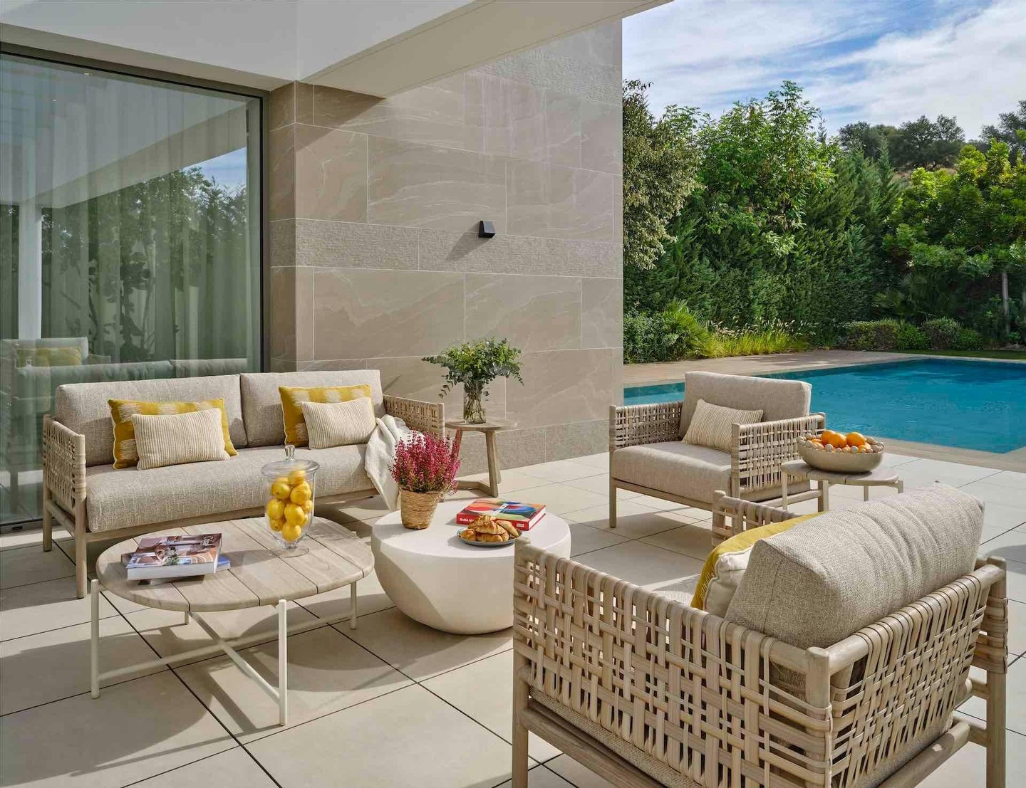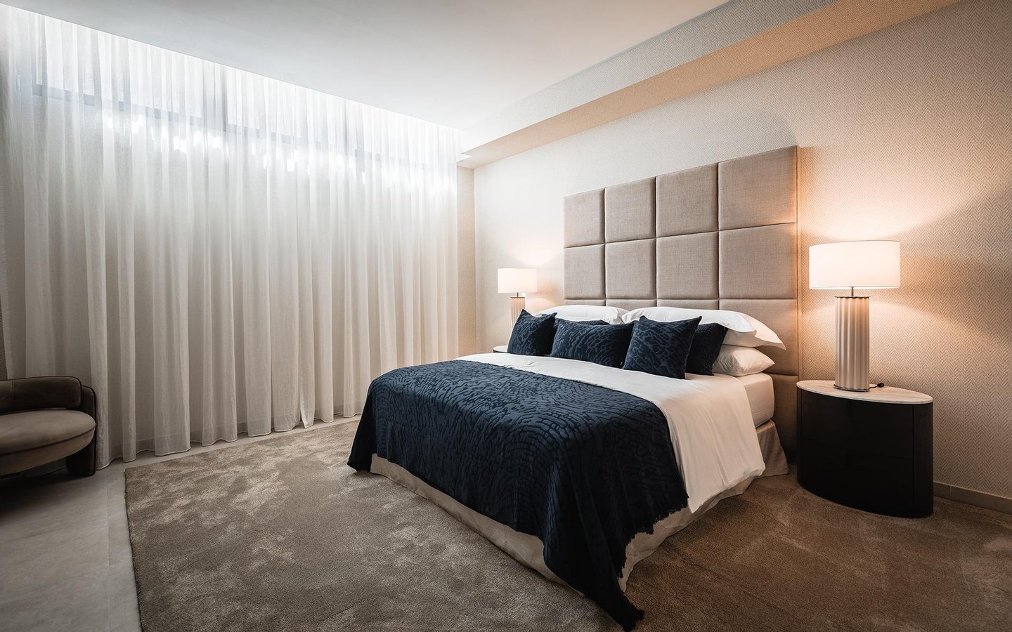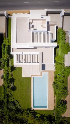 Spread across three levels, the villa combines minimalist architecture with comfortable luxury. The main floor features an inviting open-plan living and dining area, seamlessly connected to a designer German kitchen with top-of-the-line finishes. Floor-to-ceiling sliding doors open out to expansive terraces with both shaded and sunny areas for lounging and al fresco dining, overlooking the private garden and swimming pool.