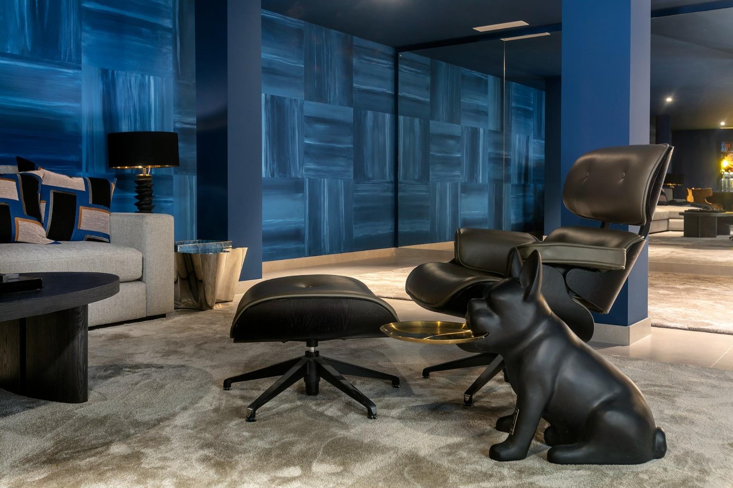 The lower level has been transformed into a chic bar and entertainment lounge reminiscent of a classic jazz club, a unique space for memorable evenings.