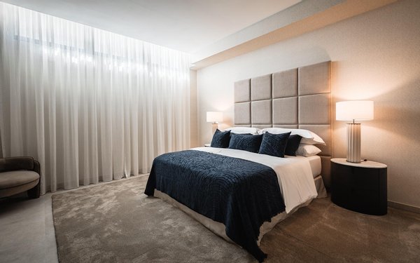 The home includes five spacious en-suite bedrooms and a guest toilet, all with wood flooring, underfloor heating, and electric blinds, creating a warm yet sophisticated ambiance throughout.
