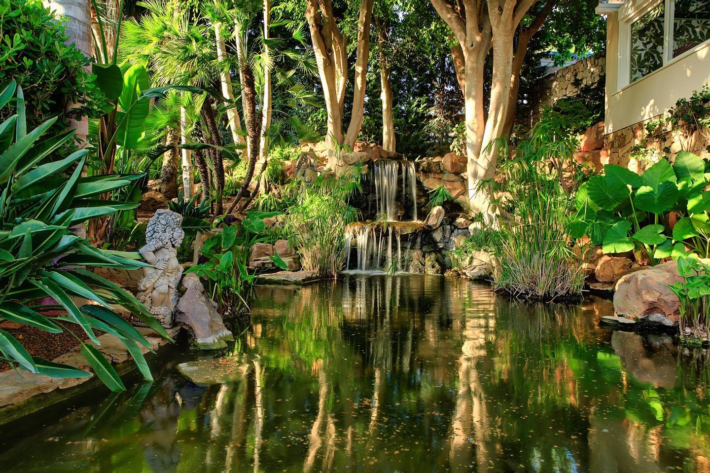Die Immobilie bietet derzeit zehn Schlafzimmer und zehn Bäder in einem zeitlosen Grundriss, ergänzt durch mehrere Lounges, weitläufige Terrassen und einen Pavillon, der ideal für Wellness, Bewirtungen oder eine Bar im Retreat-Stil ist. Das Haupthaus verfügt über eine zentrale Terrasse mit Brunnen, große Wohn- und Essbereiche sowie Suiten mit direktem Zugang zu den Terrassen und dem Poolbereich. Ein separates Gästehaus erstreckt sich über zwei Stockwerke mit zusätzlichen Schlafzimmern, Wohnzimmern und Kücheneinrichtungen und bietet eine perfekte Unterkunft für Familie oder Besucher. Die Siedlung umfasst außerdem eine Garage mit Platz für vier Fahrzeuge, angelegte Gärten und einen riesigen Poolbereich, der die spektakuläre Aussicht auf das Meer und den Golfplatz maximiert.