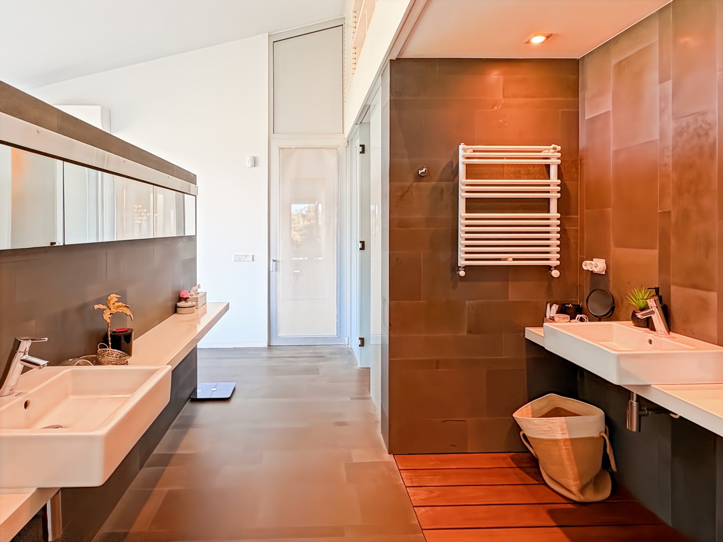 Das Haus verfügt über fünf Badezimmer, die im SPA-Stil gestaltet sind, mit Duschen mit tropischem Regeneffekt, sanfter Umgebungsbeleuchtung und einem modernen und eleganten Design.