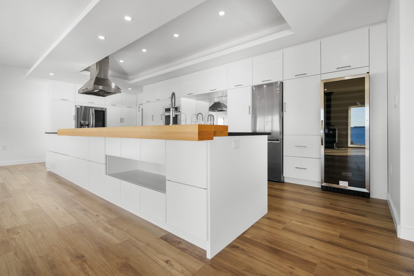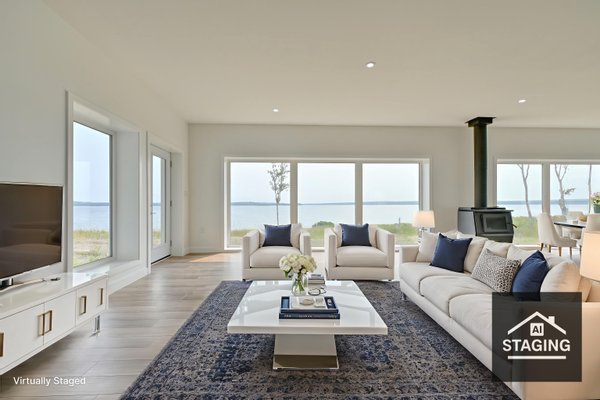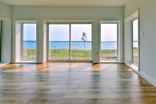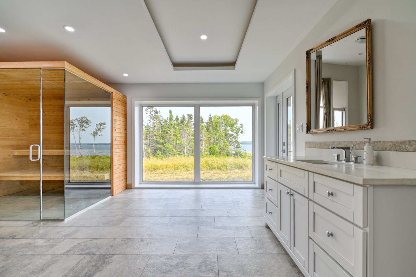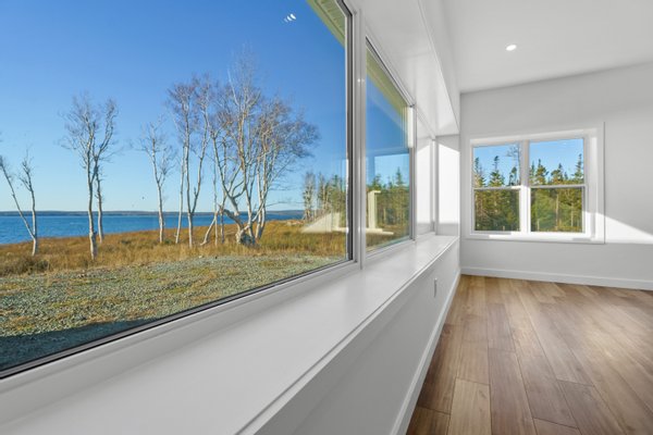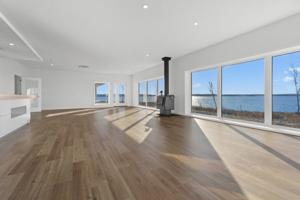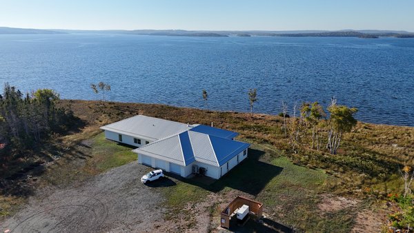 Willkommen Eric Lane, Hay Cove, Cape Breton, Nova Scotia. Exklusives privates Anwesen am Seeufer mit Blick auf 1,26 km des Ufers des Bras d'Or Lake mit eigenem Sandstrand. Der maßgefertigte Luxusbungalow mit 467 m² (fertiggestellt 2025) bietet die