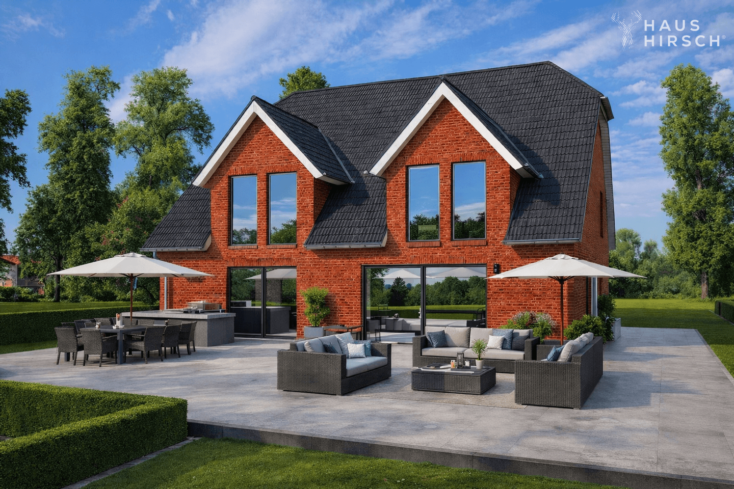 Bei einer Realisierung mit Metishaus liegen Sie pro Doppelhaushälfte im KfW-55-Standard, mit Verblendstein-Fassade, Wärmepumpe, Photovoltaikanlage inkl. Speicher, inkl. Abriss des Altbestands und sämtlicher Kaufnebenkosten bei ca. 630 TEUR.