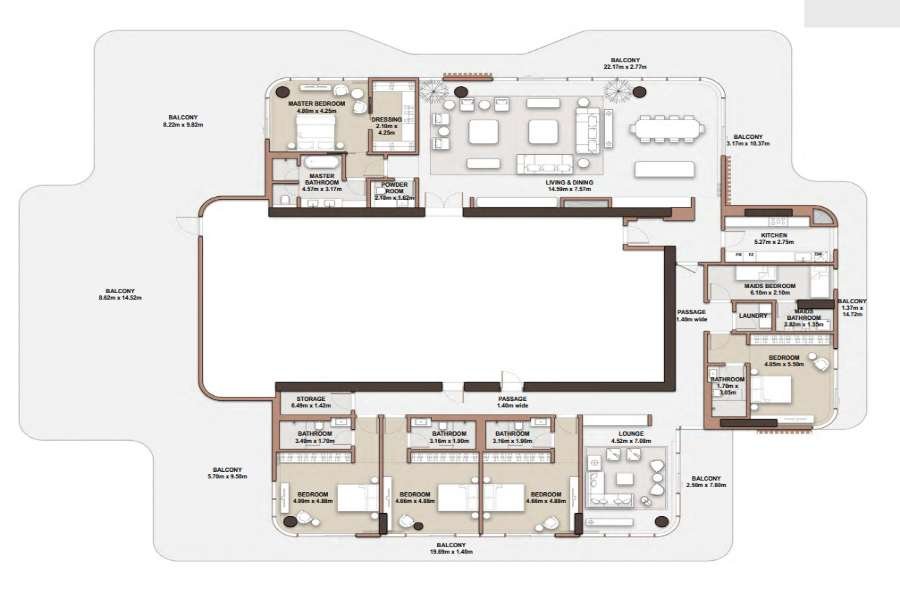 Willkommen in einem atemberaubenden Penthouse mit fünf Schlafzimmern, das den Bedürfnissen von Familien und Investoren gleichermaßen gerecht wird. Diese geräumige Immobilie verfügt über eine freundliche Umgebung, perfekt für die Schaffung von