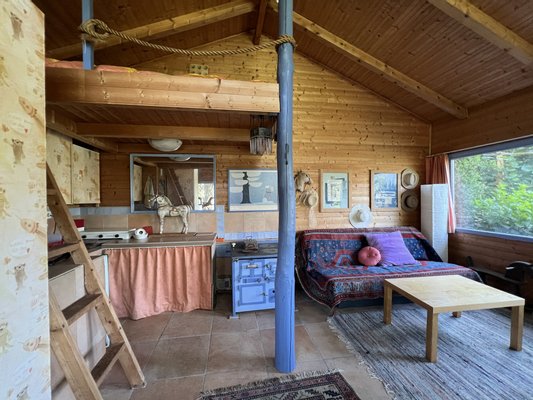 Das Chalet hat eine Wohnnutzfläche von ca. 35 mq und ist wie folgendes aufgeteilt: Erdgeschoss: Wohnbereich mit offener Küche, Badezimmer und Heizungsraum. Offene Galerie: Schlafzimmer.